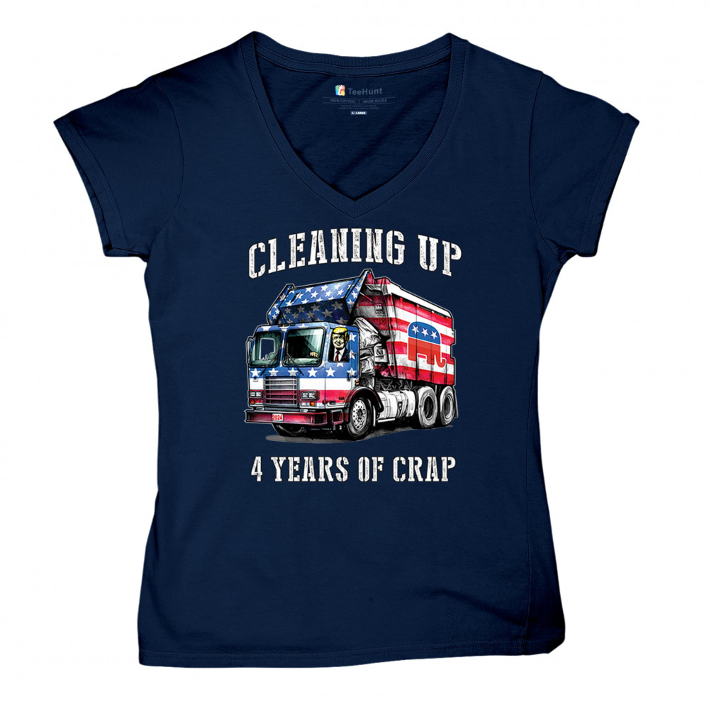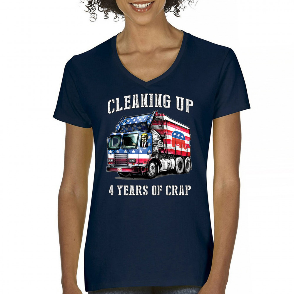 Bold "Cleaning Up 4 Years of Crap" design featuring Trump, the GOP, and the American flag. Perfect for proud conservatives and patriots.