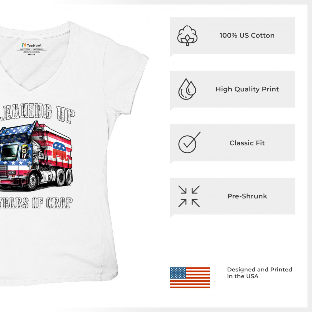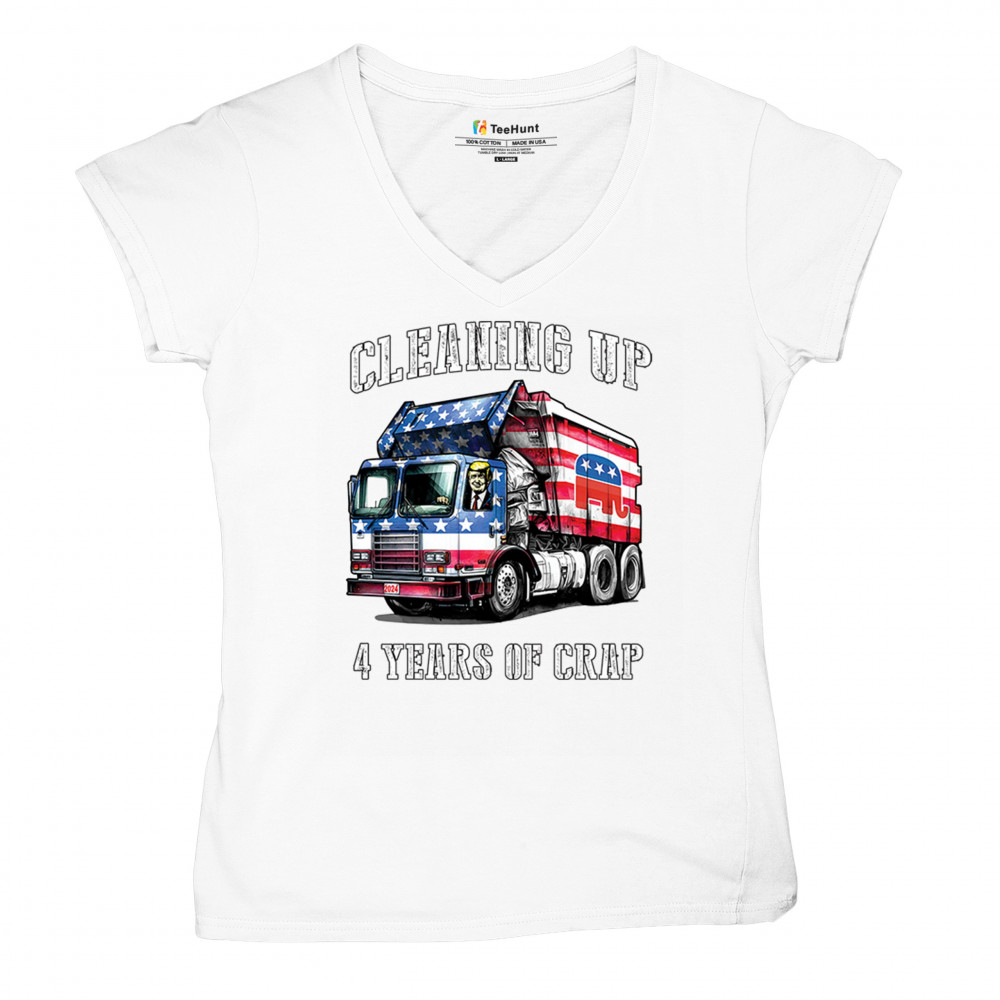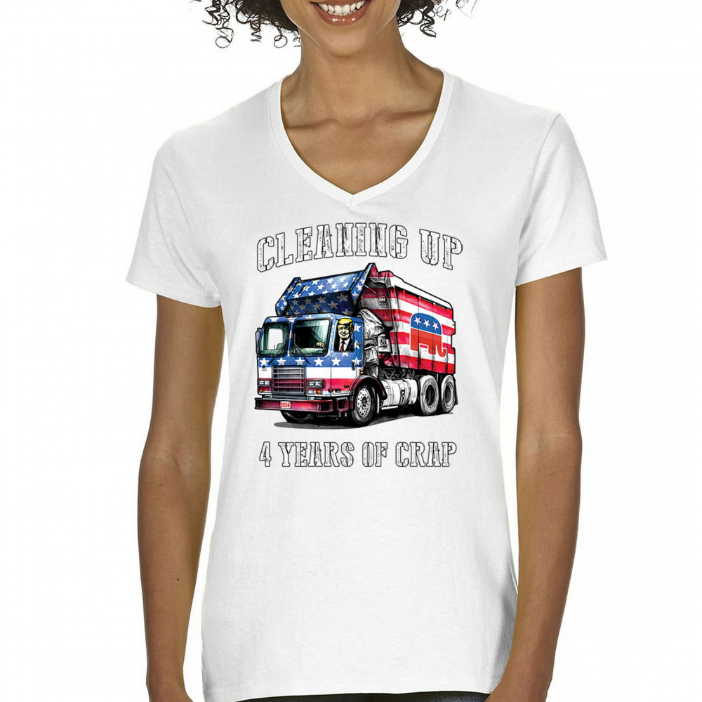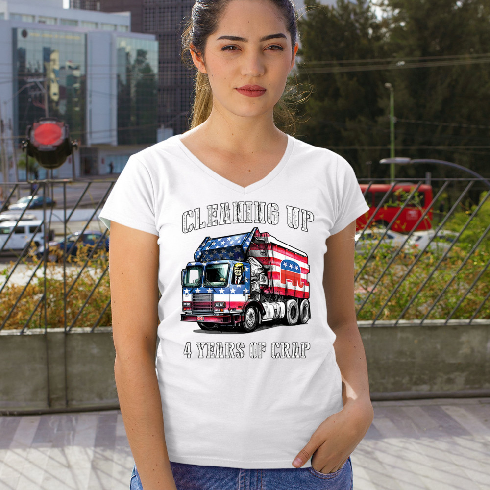 Bold "Cleaning Up 4 Years of Crap" design featuring Trump, the GOP, and the American flag. Perfect for proud conservatives and patriots.