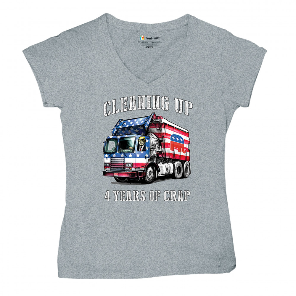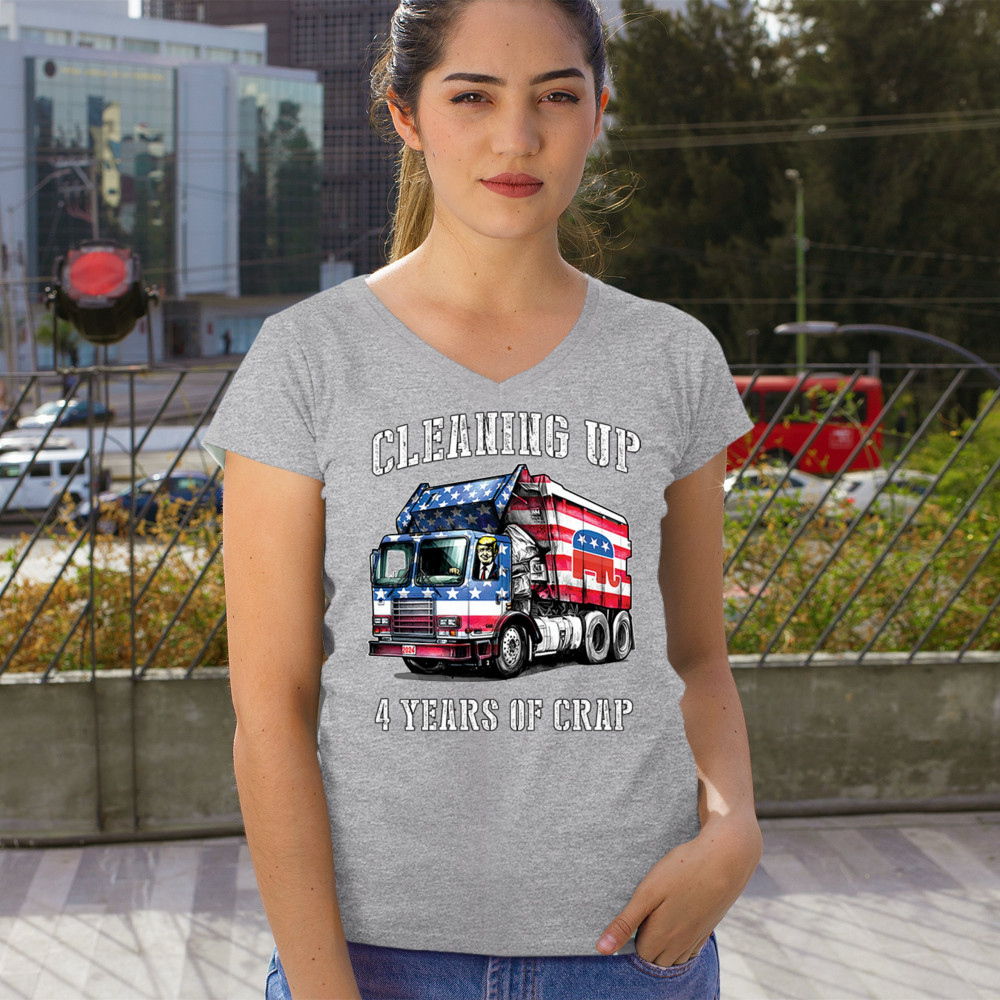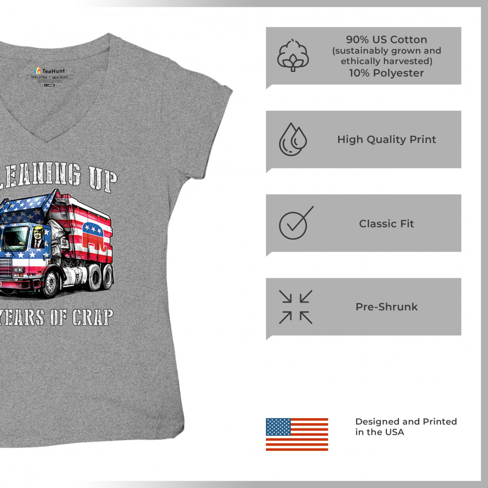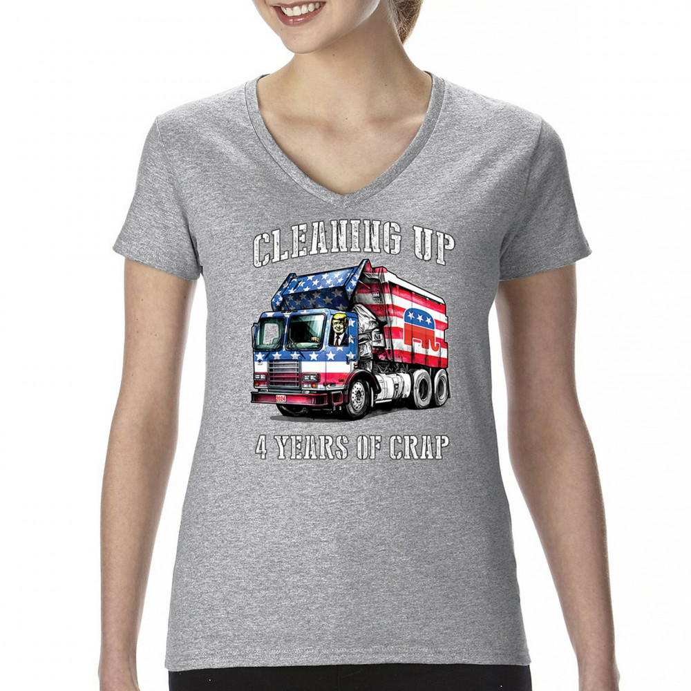 Bold "Cleaning Up 4 Years of Crap" design featuring Trump, the GOP, and the American flag. Perfect for proud conservatives and patriots.