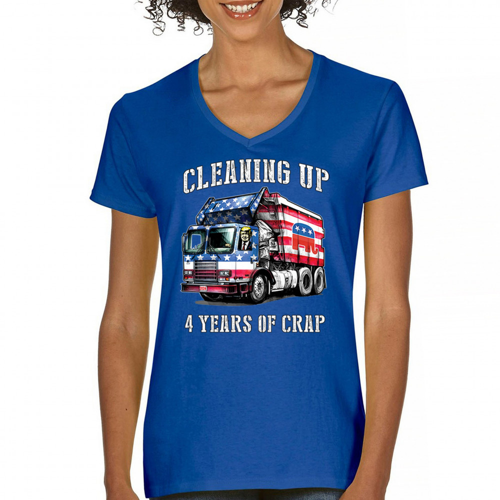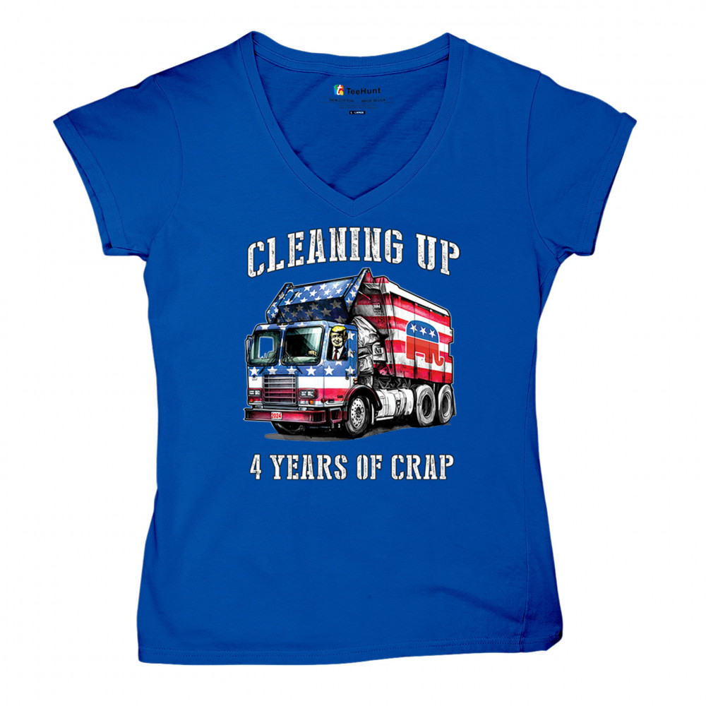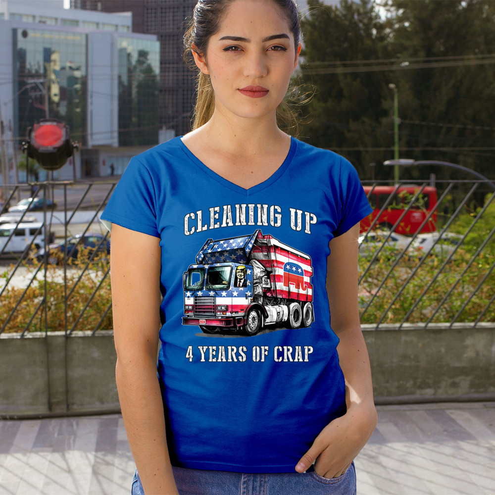 Bold "Cleaning Up 4 Years of Crap" design featuring Trump, the GOP, and the American flag. Perfect for proud conservatives and patriots.