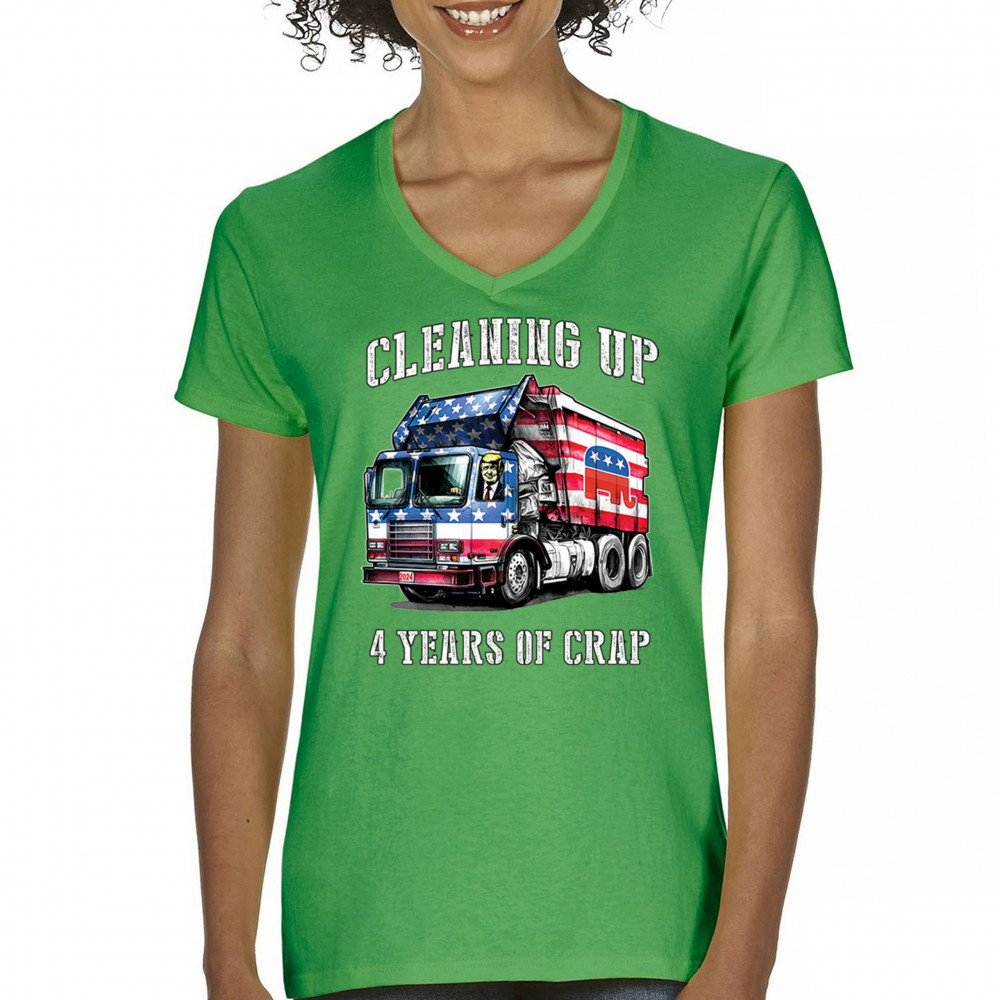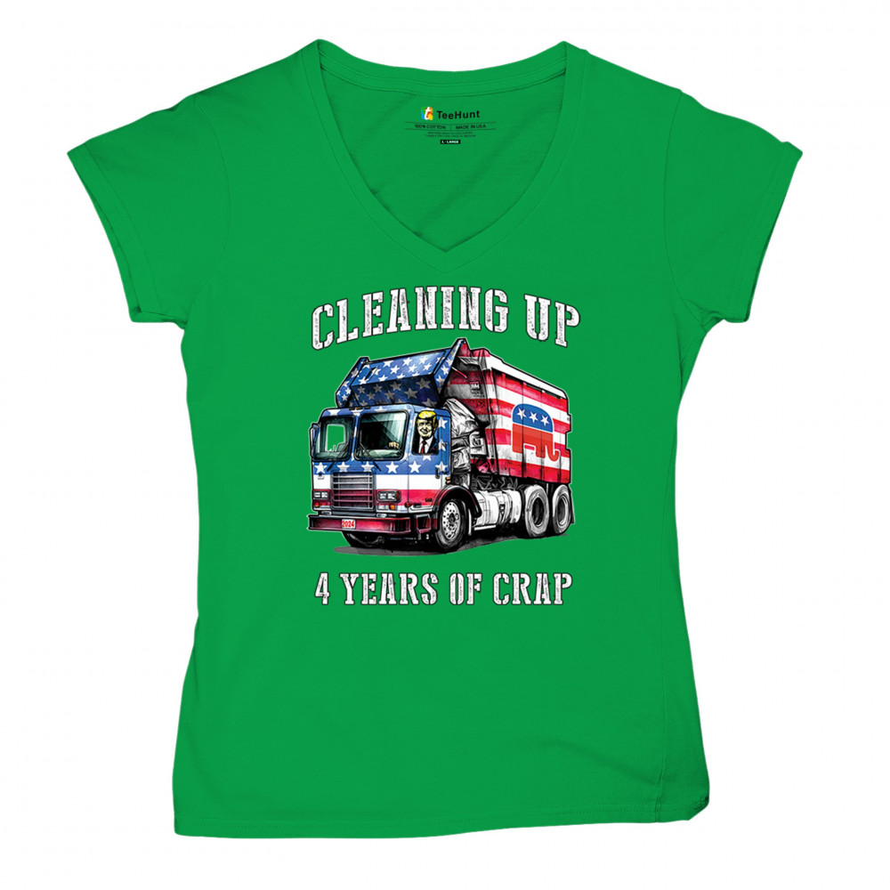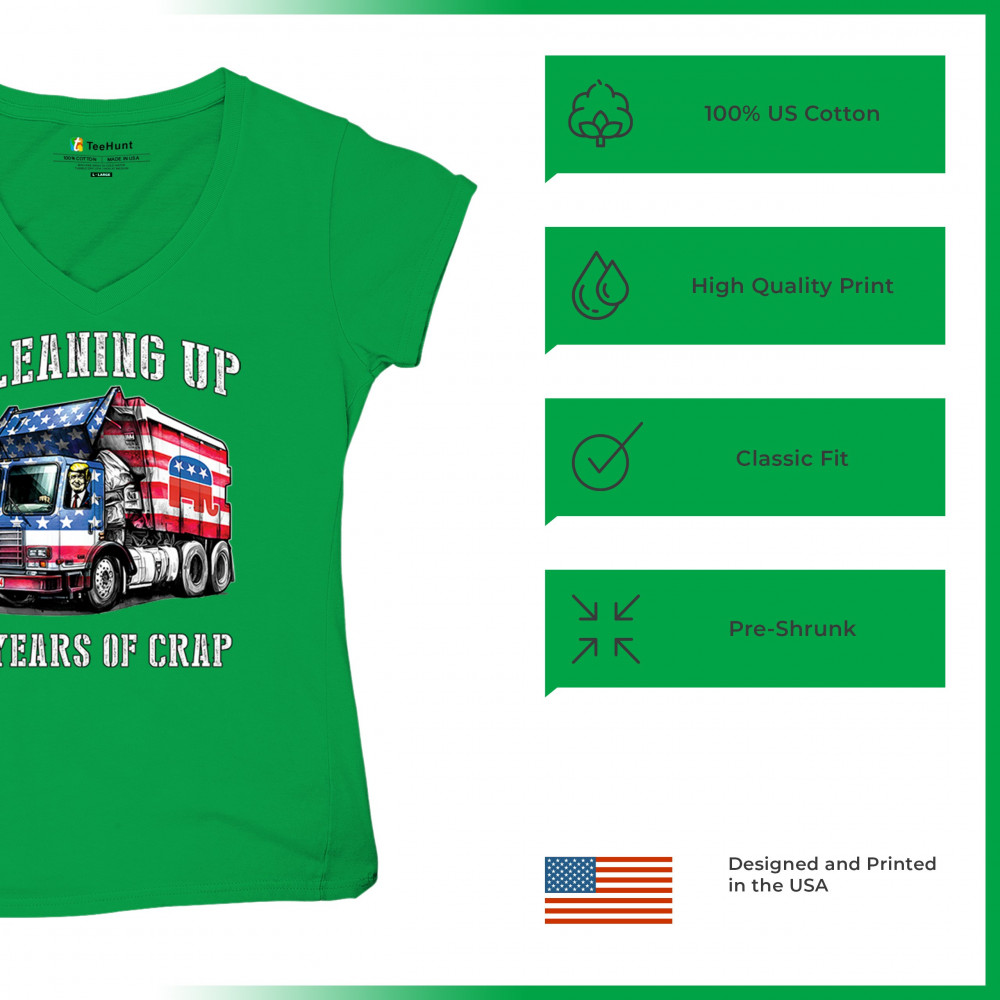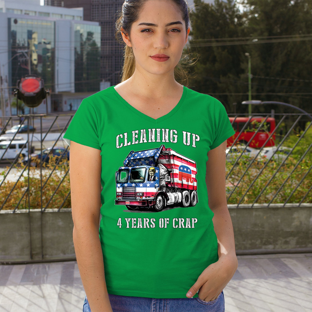 Bold "Cleaning Up 4 Years of Crap" design featuring Trump, the GOP, and the American flag. Perfect for proud conservatives and patriots.