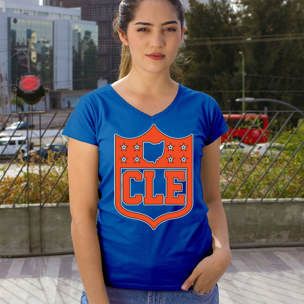 Bold CLE shield design honoring Cleveland football nation with Rust Belt pride, underdog grit, and blue collar sports heritage.