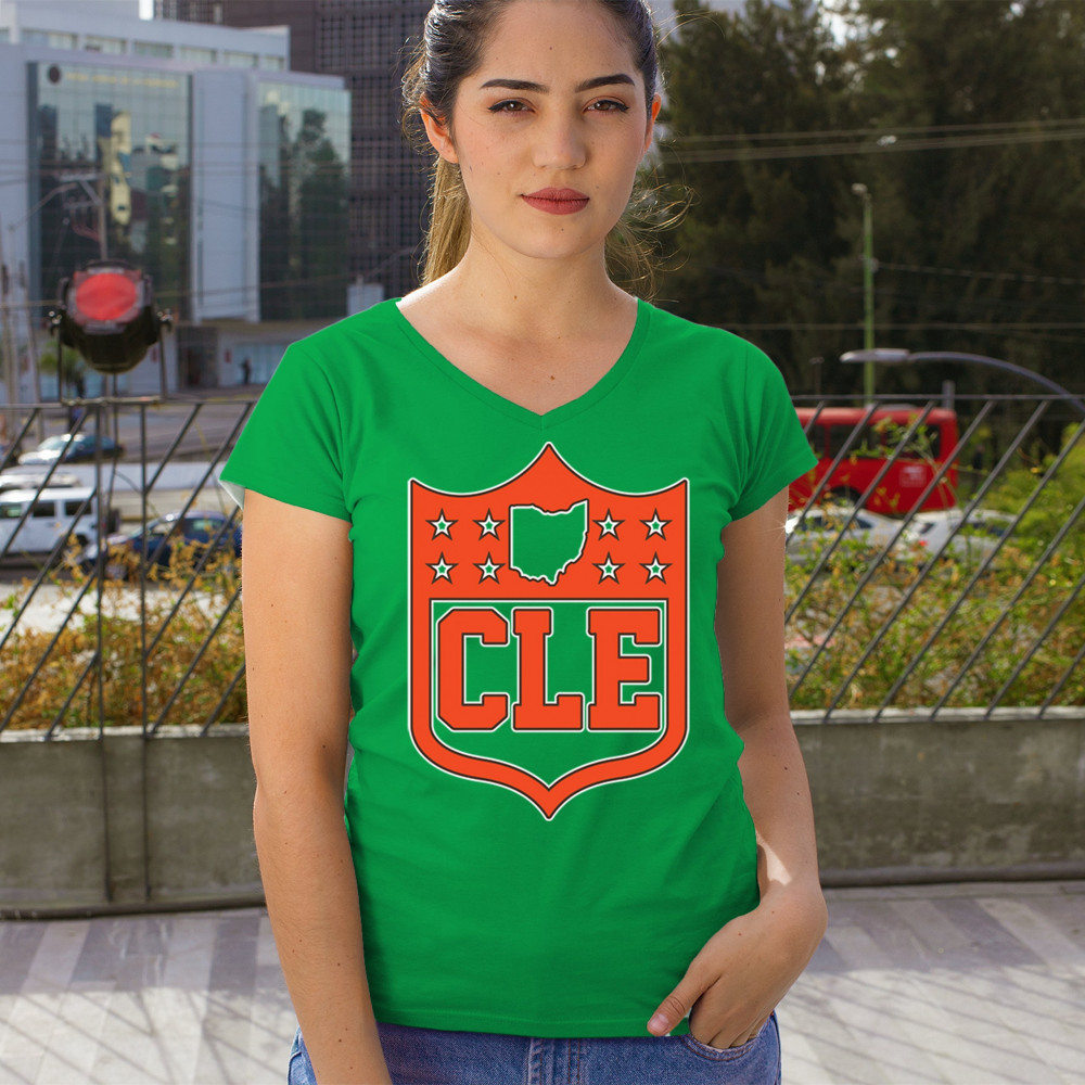 Bold CLE shield design honoring Cleveland football nation with Rust Belt pride, underdog grit, and blue collar sports heritage.