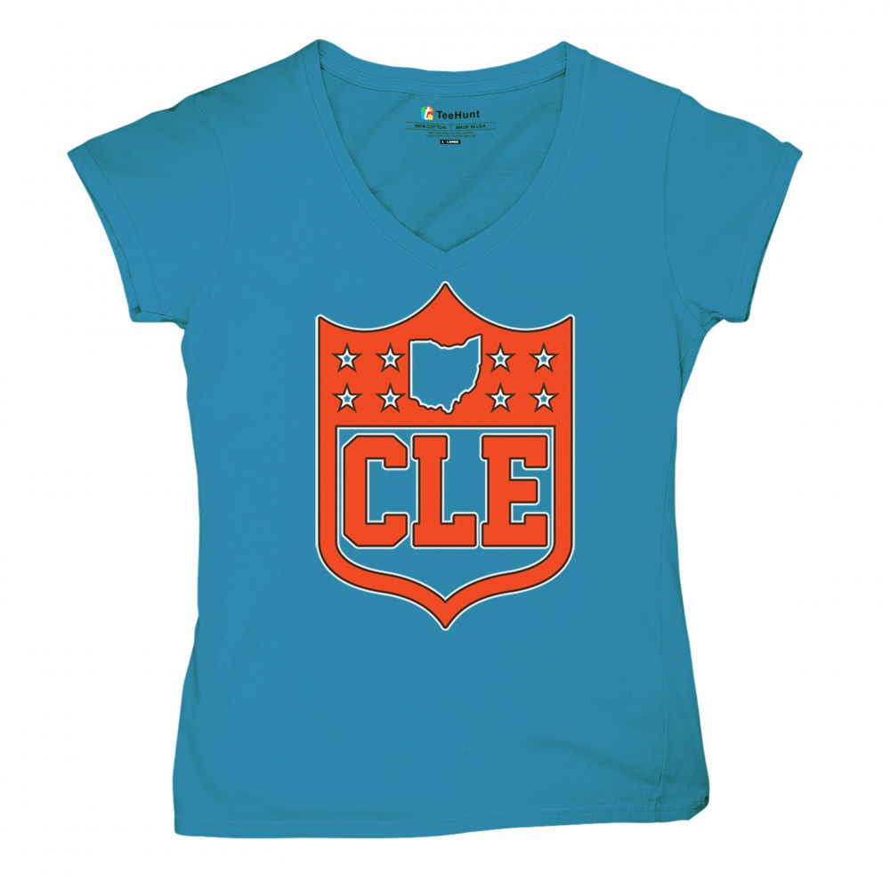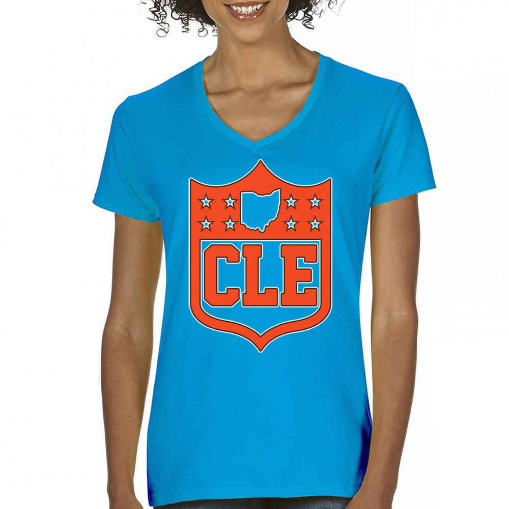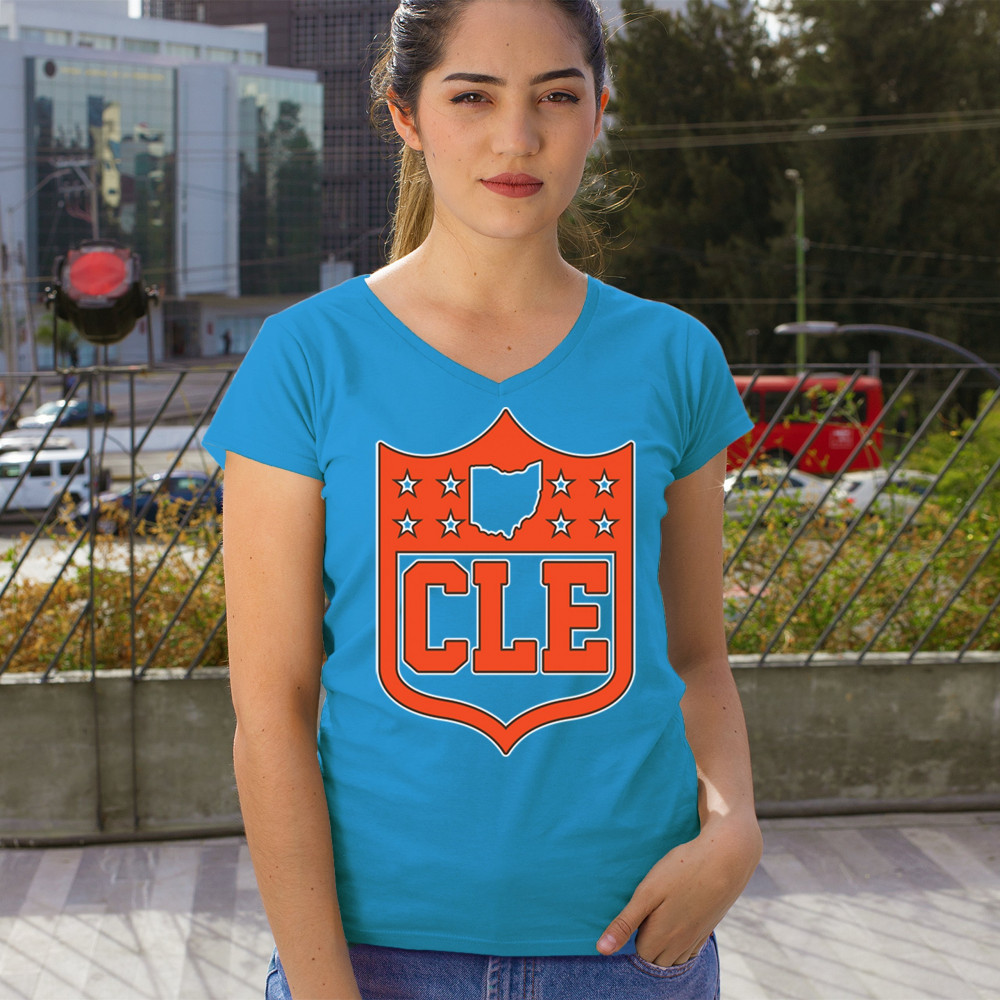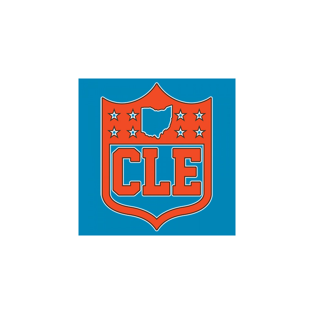 Bold CLE shield design honoring Cleveland football nation with Rust Belt pride, underdog grit, and blue collar sports heritage.