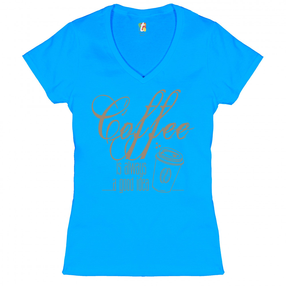 A print saying "Coffee is always a good idea". The print features a picture of a paper cup of tea with a coffee bean on it and with several hearts steaming from it. A great choice to wear to spread positive vibes and show what a passionate coffee fan you