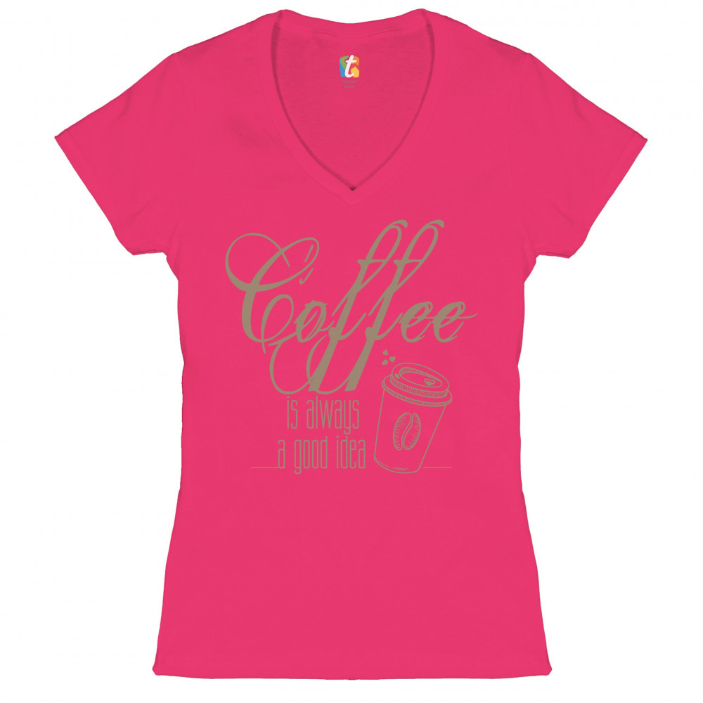A print saying "Coffee is always a good idea". The print features a picture of a paper cup of tea with a coffee bean on it and with several hearts steaming from it. A great choice to wear to spread positive vibes and show what a passionate coffee fan you