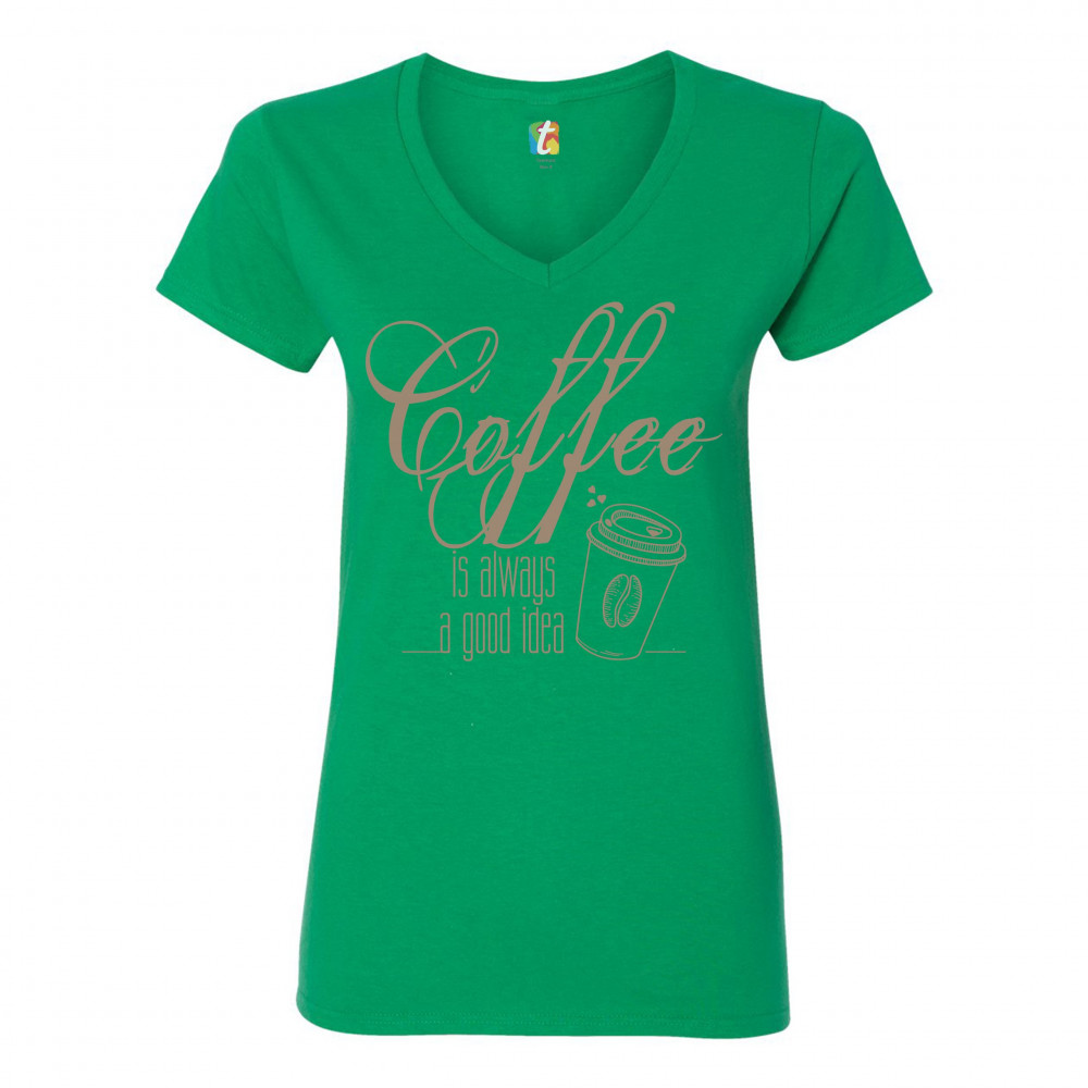 A print saying "Coffee is always a good idea". The print features a picture of a paper cup of tea with a coffee bean on it and with several hearts steaming from it. A great choice to wear to spread positive vibes and show what a passionate coffee fan you