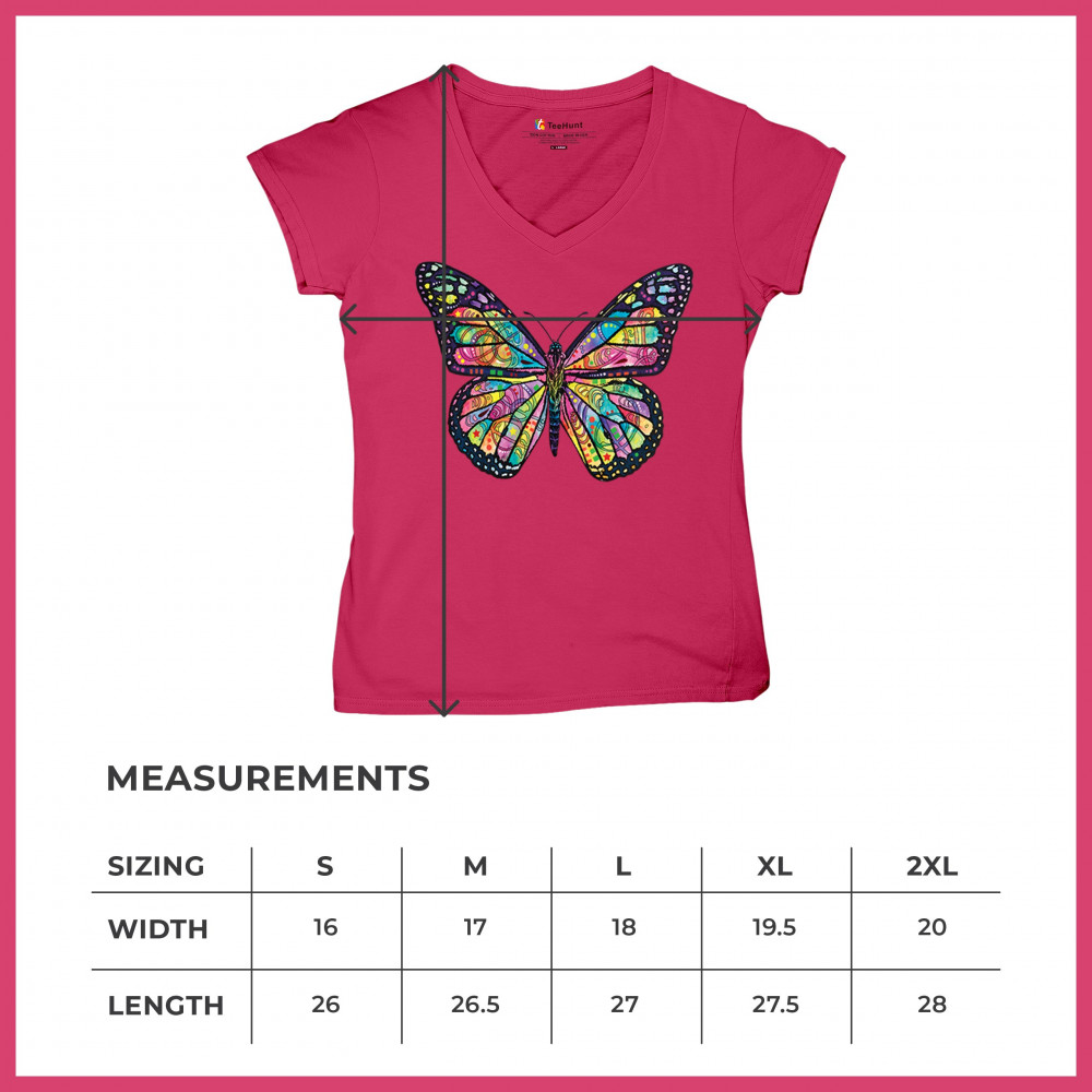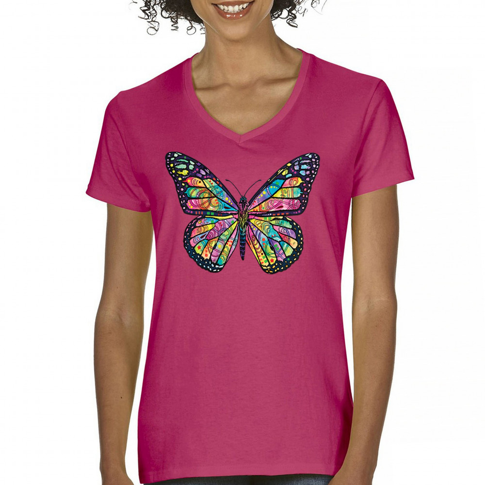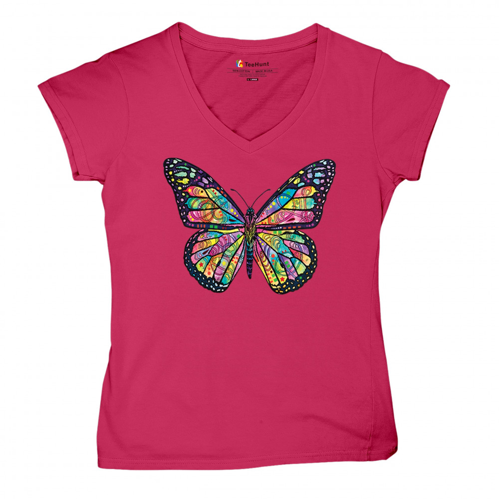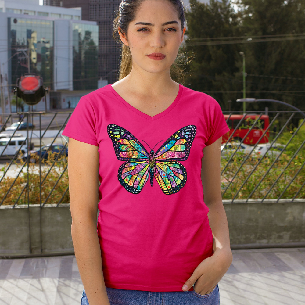 COLORFUL NEON BUTTERFLY women's v-neck t-shirt dean russo beautiful nature tee pink