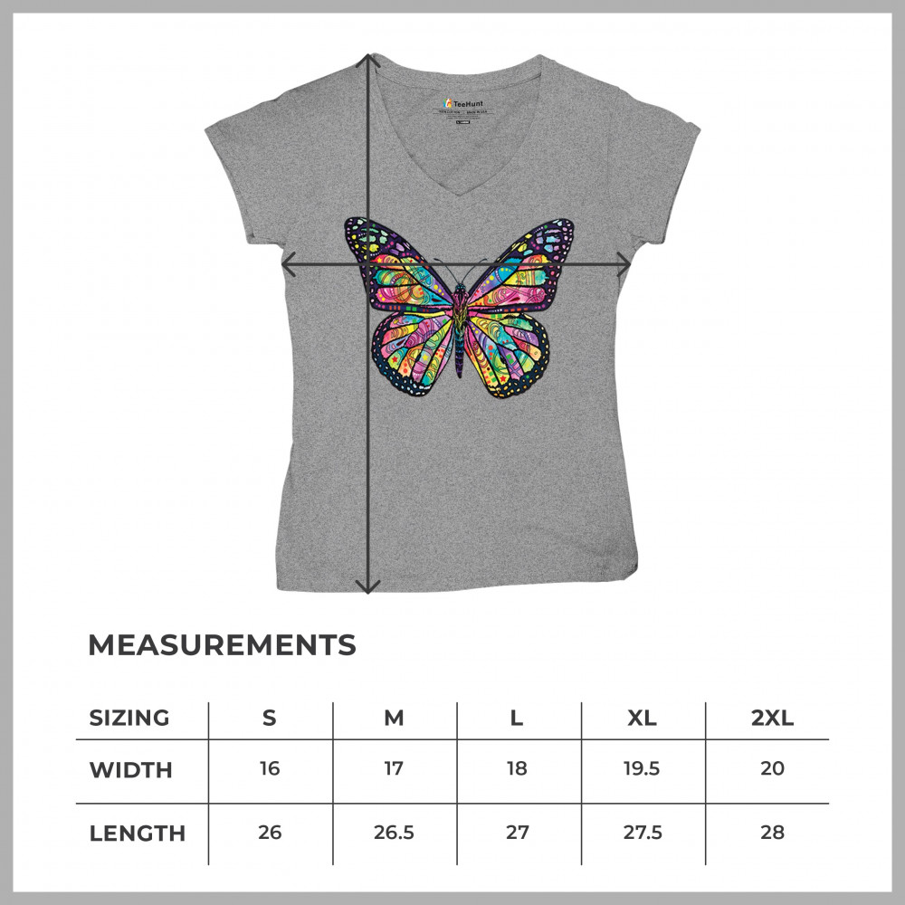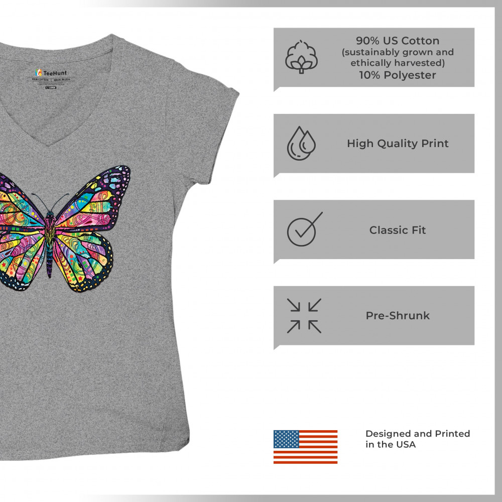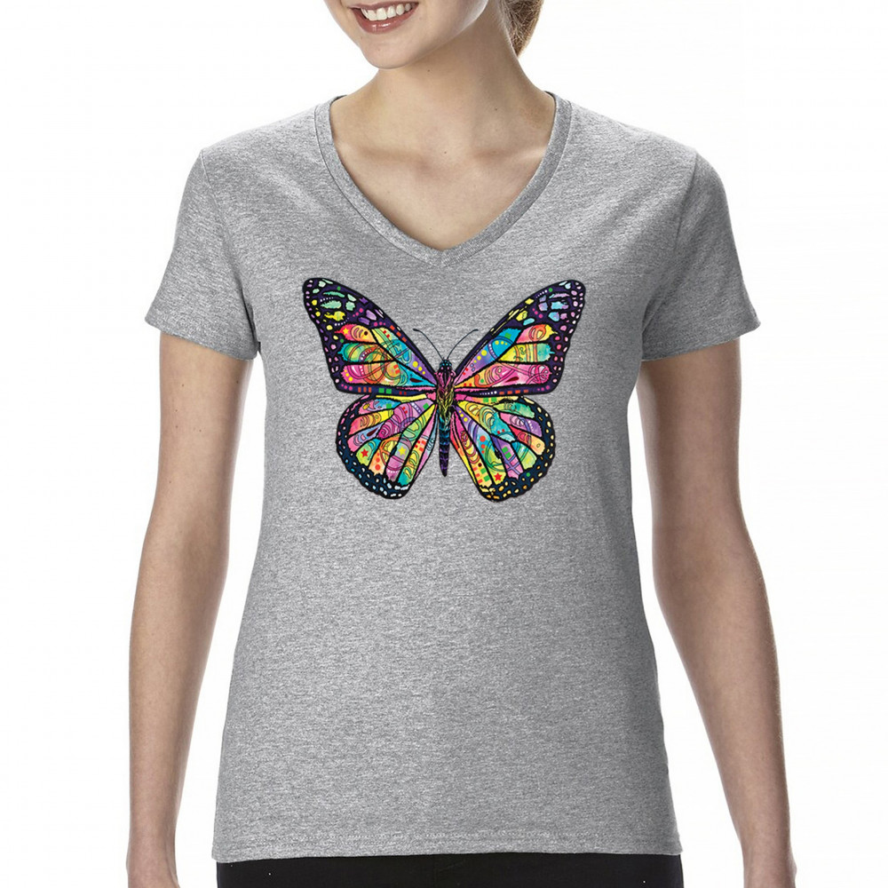 COLORFUL NEON BUTTERFLY women's v-neck t-shirt dean russo beautiful nature tee gray