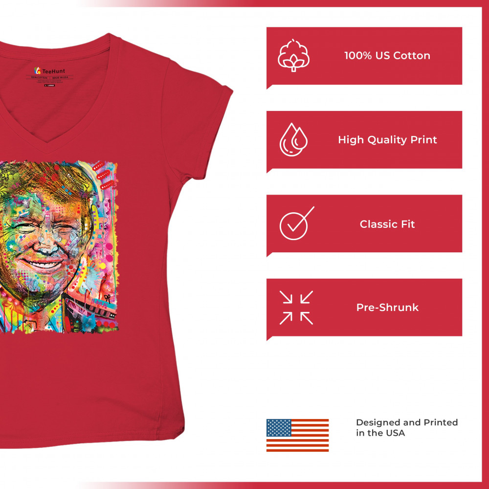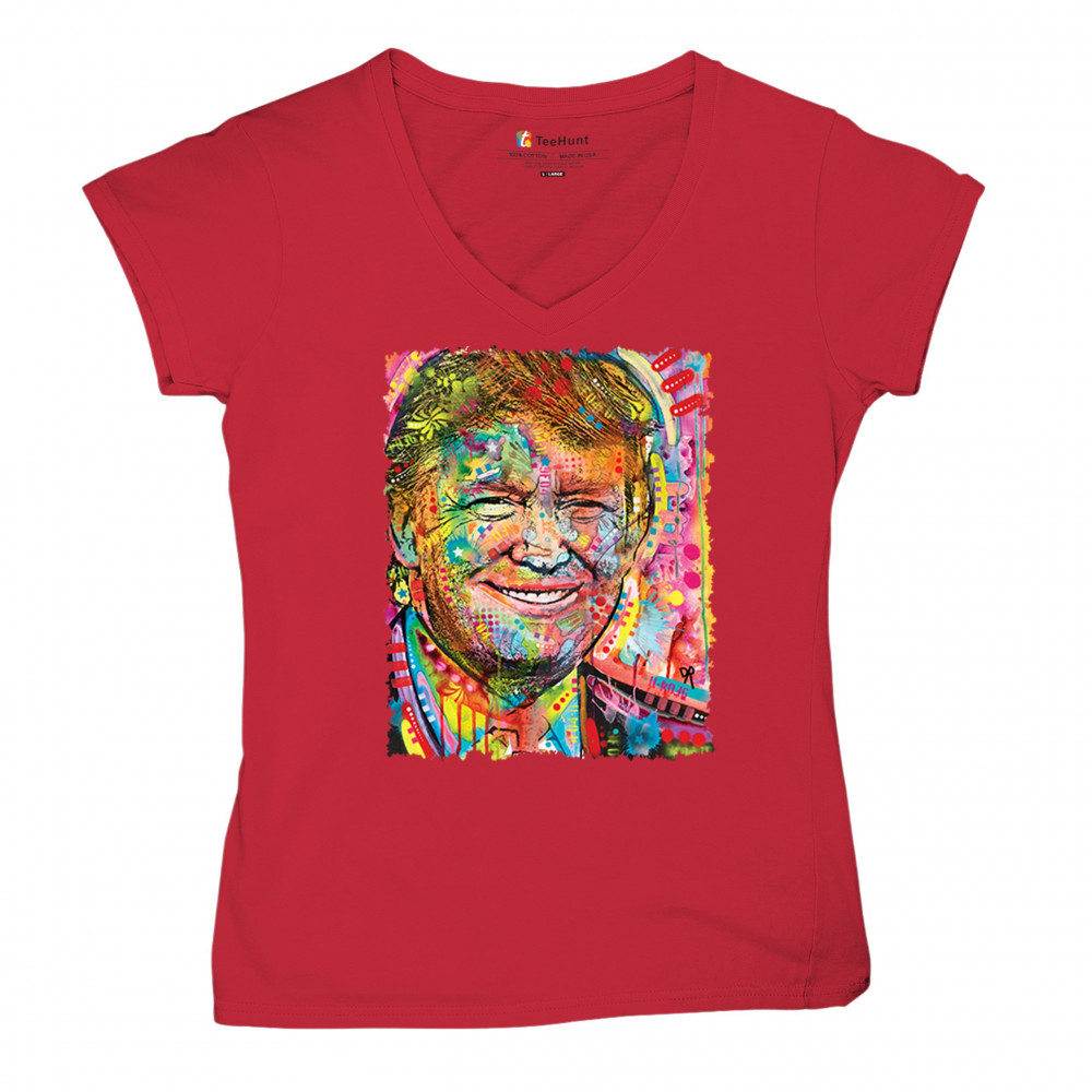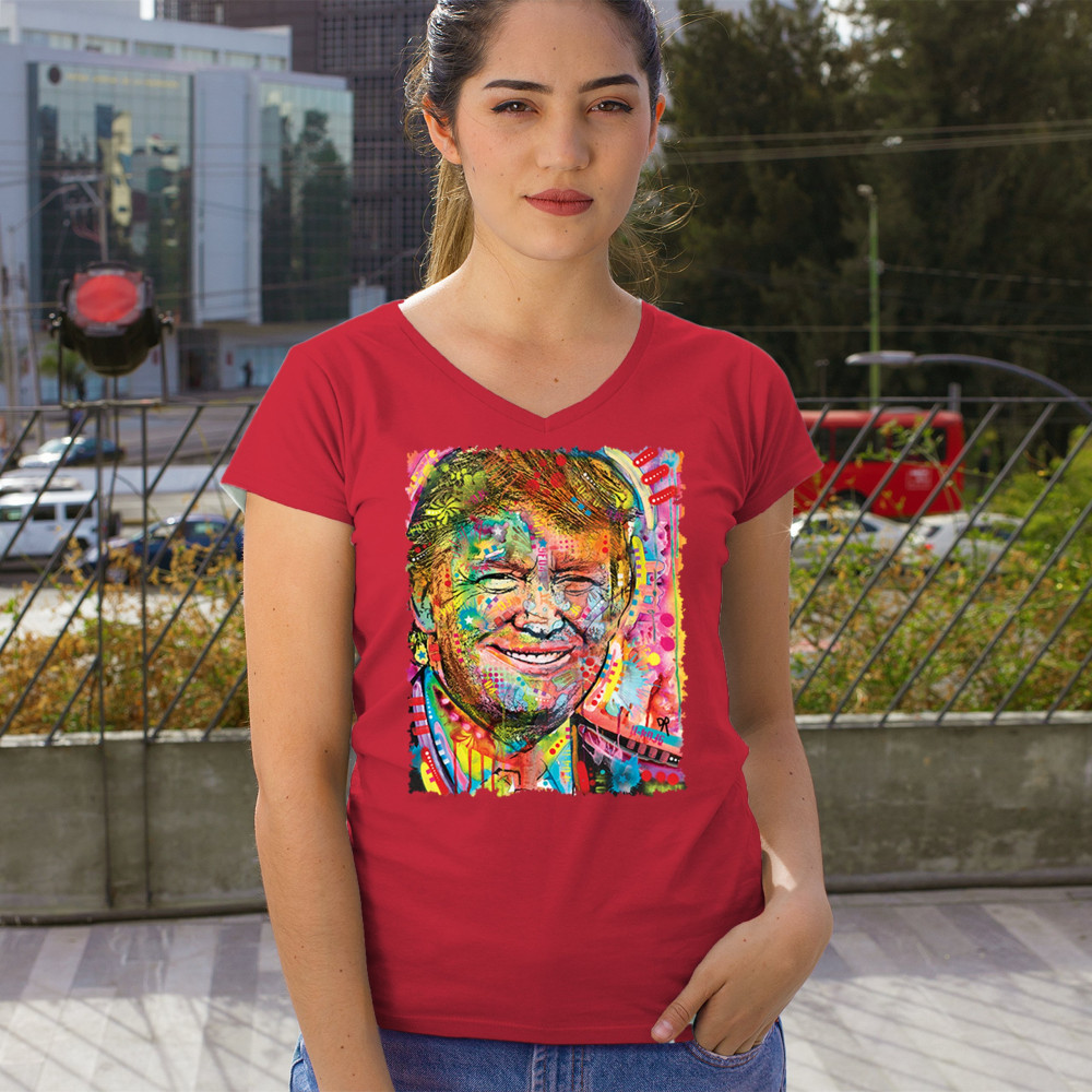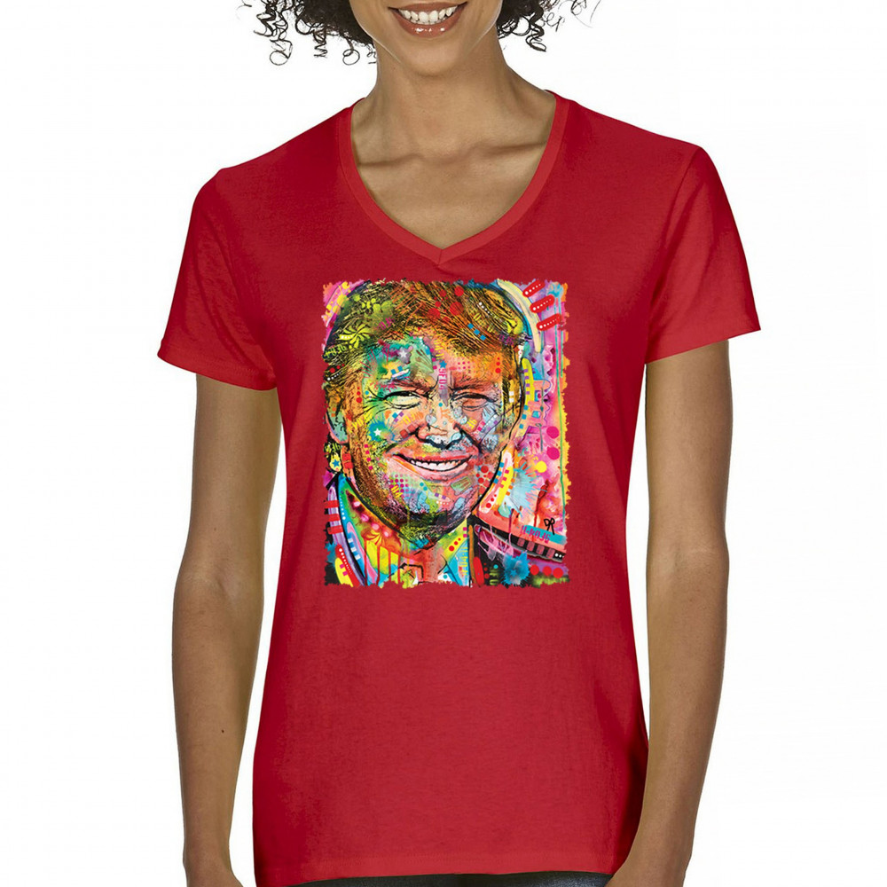 DEAN RUSSO COLORFUL TRUMP colorful trump women's v-neck t-shirt dean russo 45 american president 2024 tee red