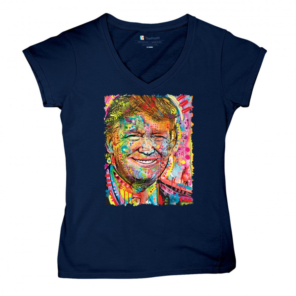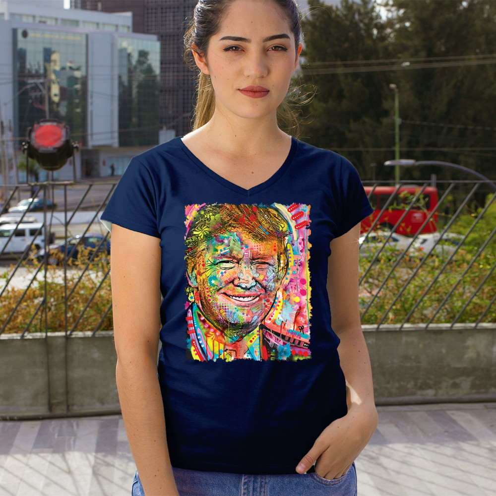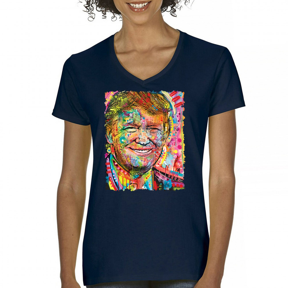 DEAN RUSSO COLORFUL TRUMP colorful trump women's v-neck t-shirt dean russo 45 american president 2024 tee navy blue