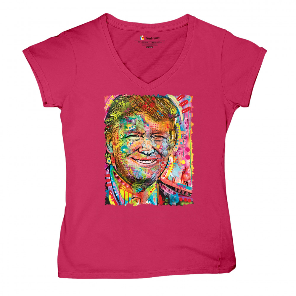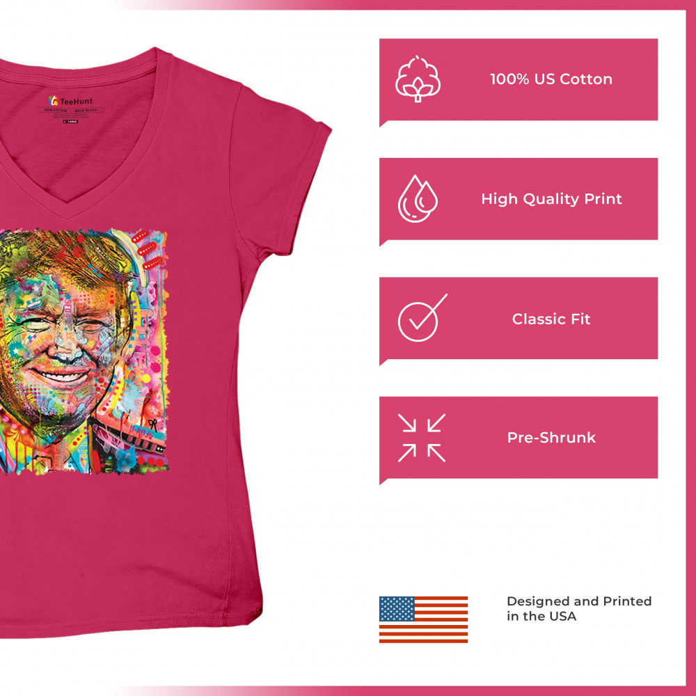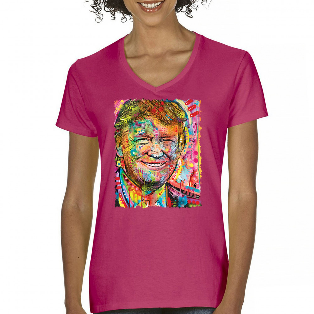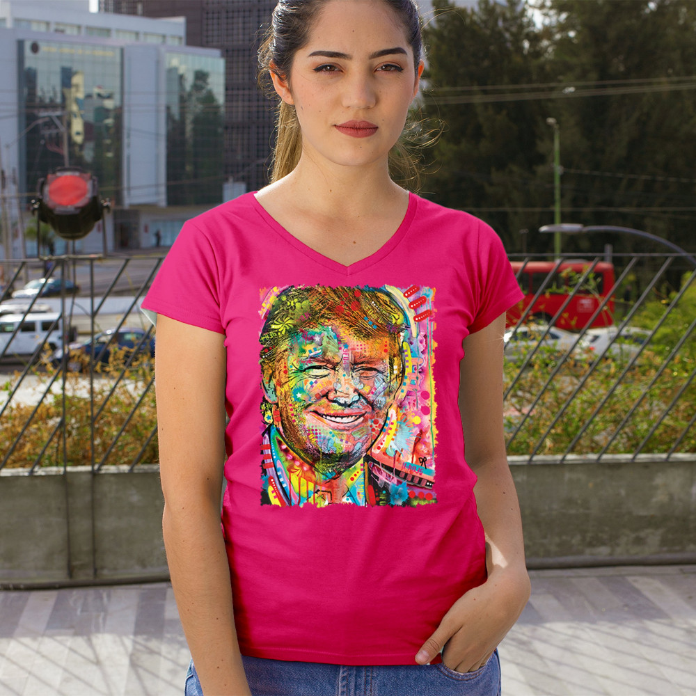 DEAN RUSSO COLORFUL TRUMP colorful trump women's v-neck t-shirt dean russo 45 american president 2024 tee pink
