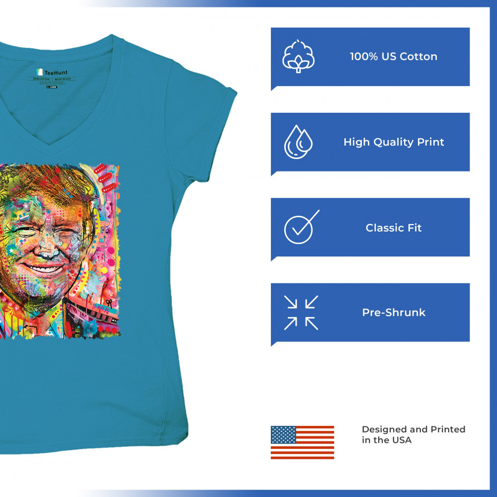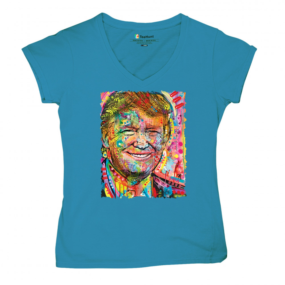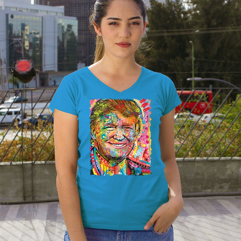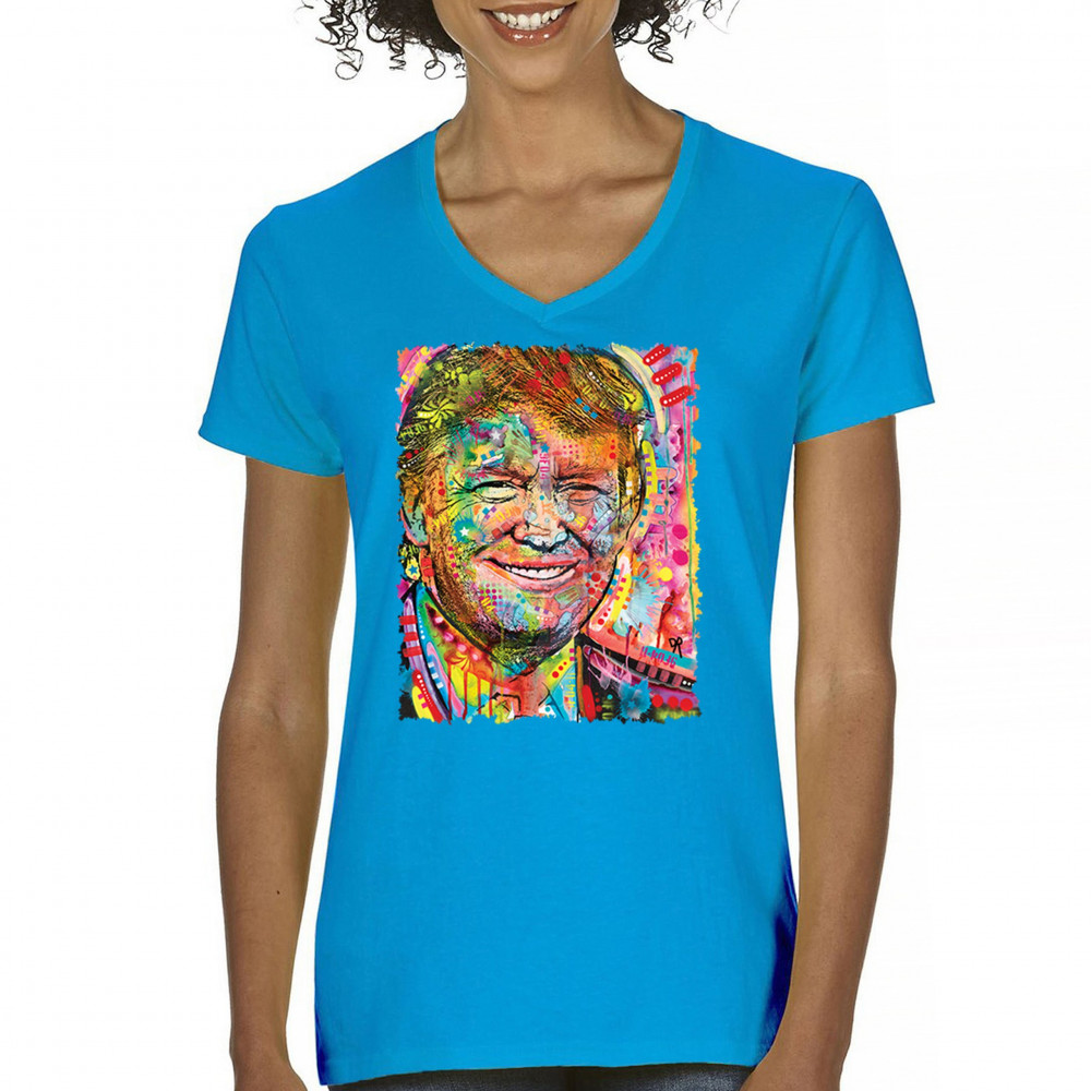 DEAN RUSSO COLORFUL TRUMP colorful trump women's v-neck t-shirt dean russo 45 american president 2024 tee turquoise