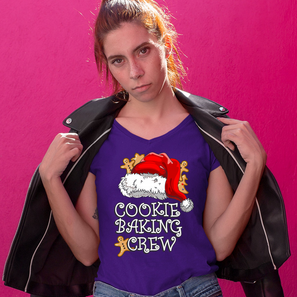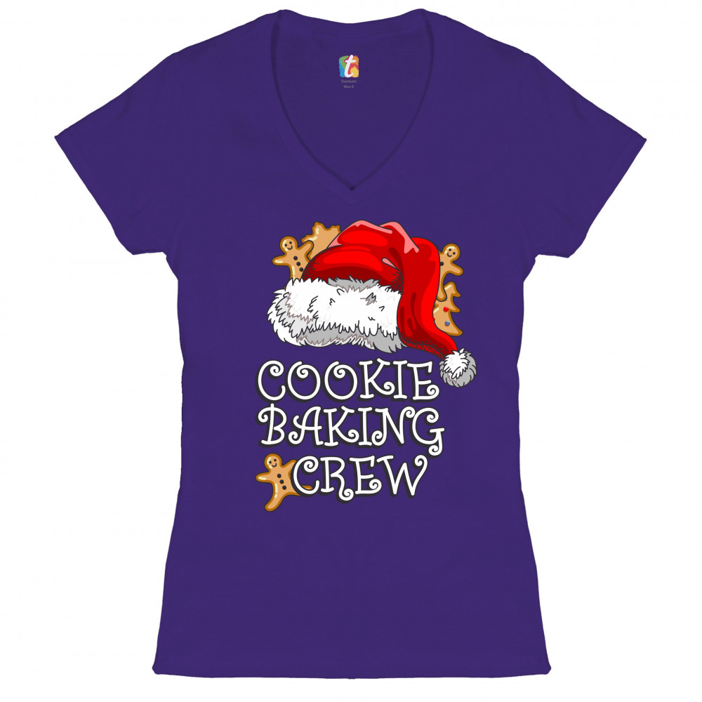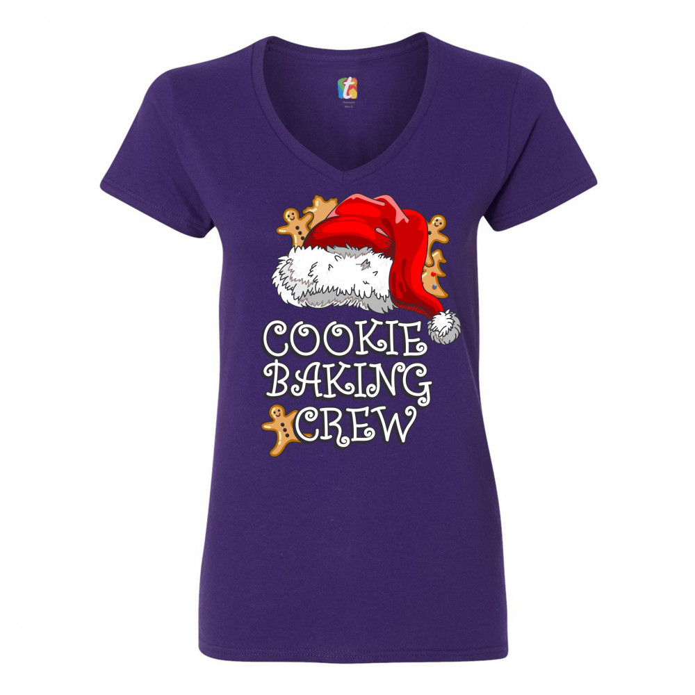 COOKIE BAKING CRUE women's v-neck t-shirt christmas gingerbread men tee purple