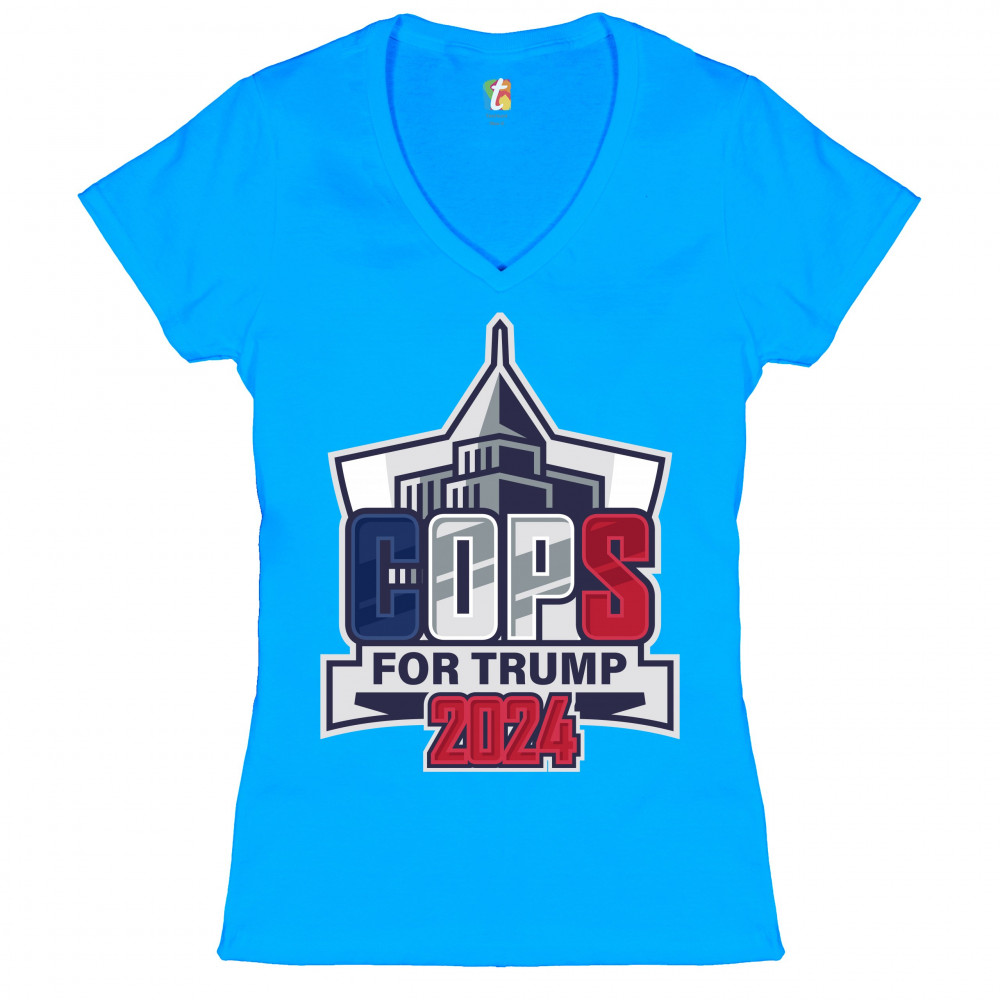 COPS FOR TRUMP women's v-neck t-shirt keep america great donald trump 2024 tee turquoise