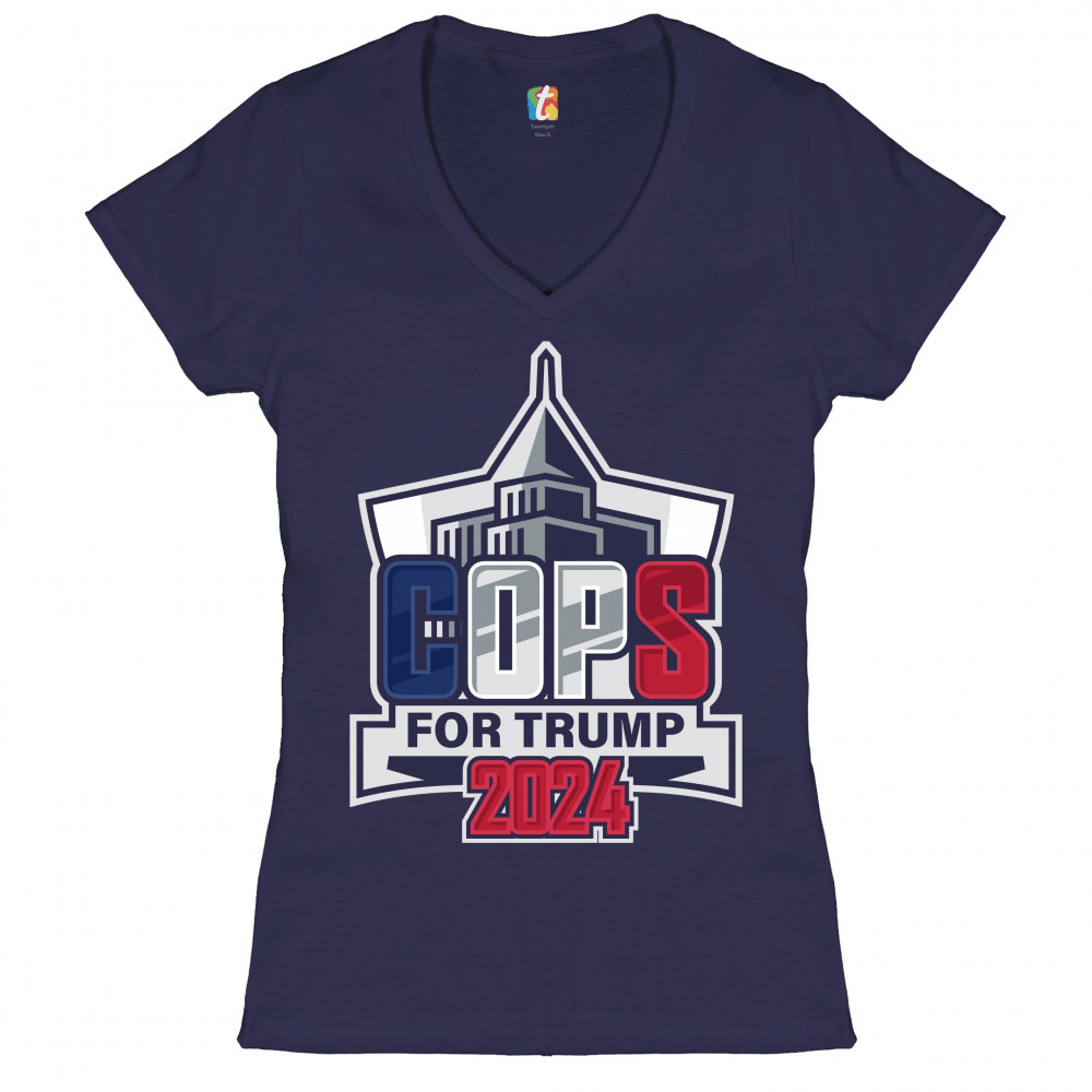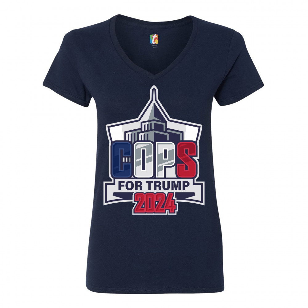 COPS FOR TRUMP women's v-neck t-shirt keep america great donald trump 2024 tee navy blue