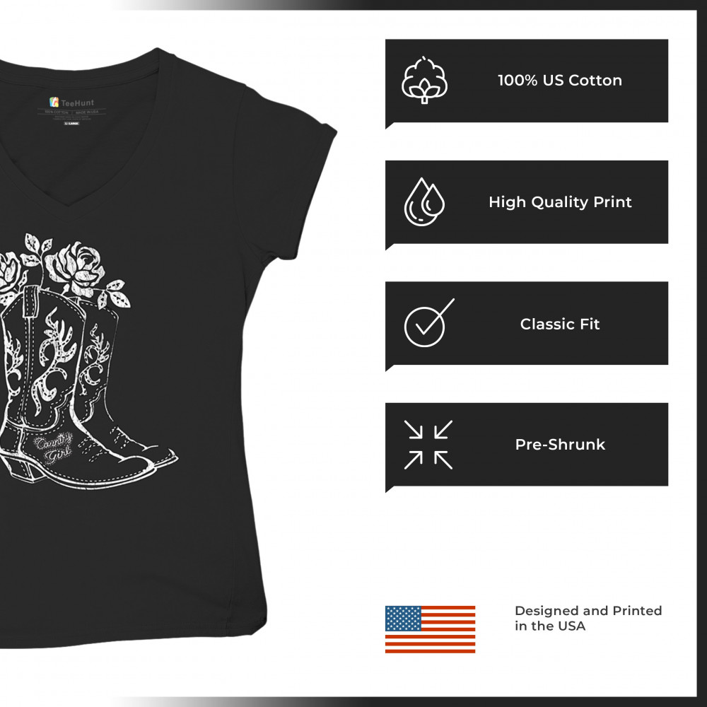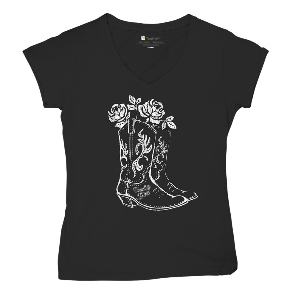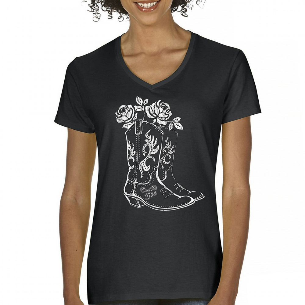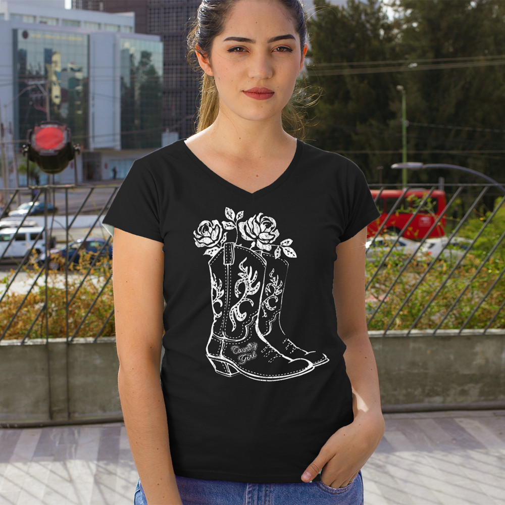 Rustic country girl design with boots and roses. Vintage western art perfect for cowgirls, rodeos, fairs, and outdoor country events.