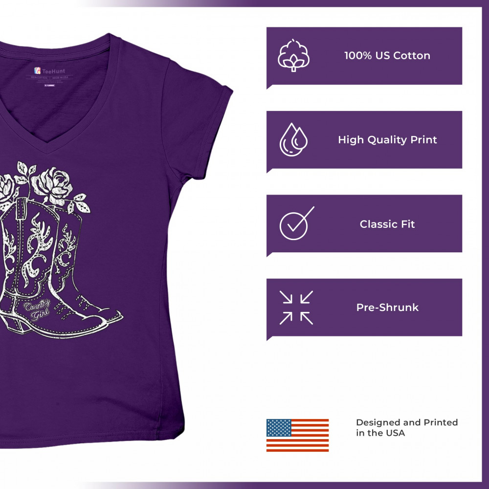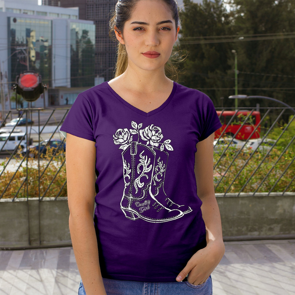 Rustic country girl design with boots and roses. Vintage western art perfect for cowgirls, rodeos, fairs, and outdoor country events.