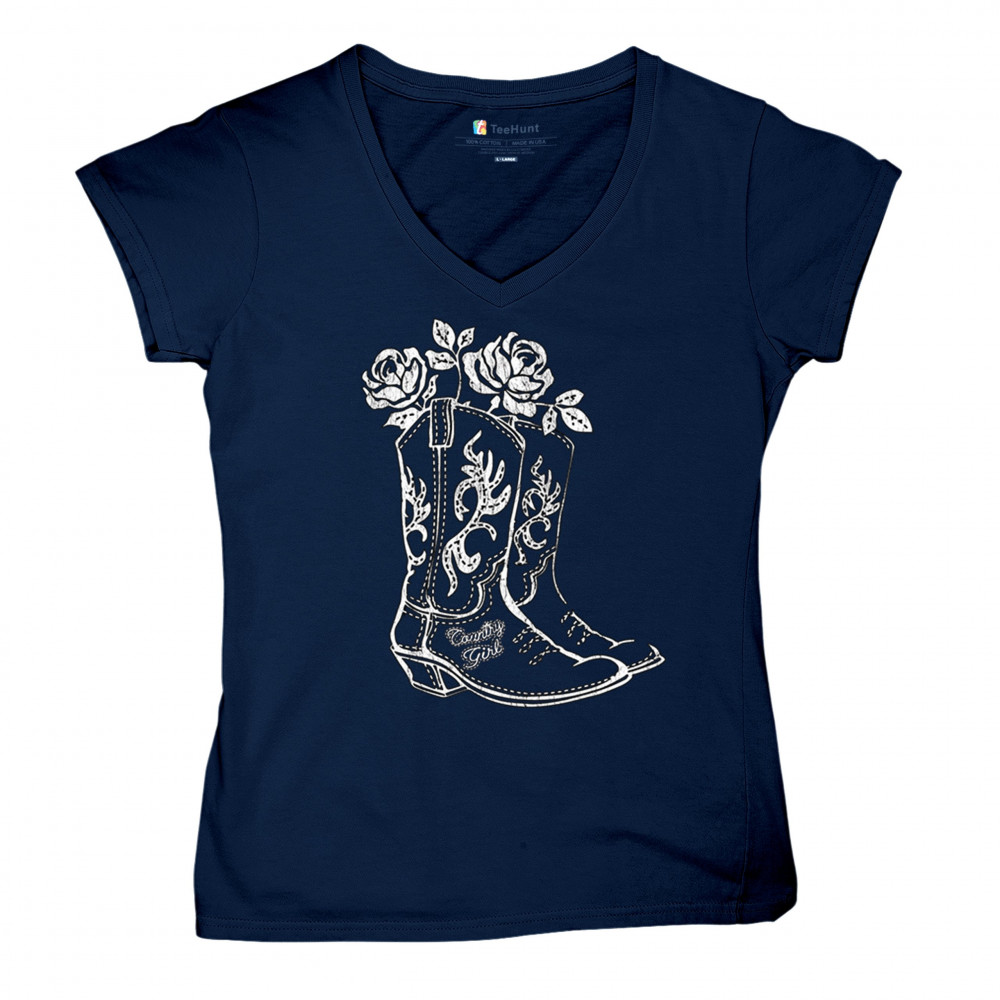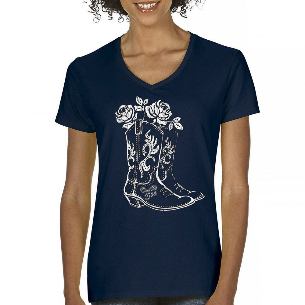 Rustic country girl design with boots and roses. Vintage western art perfect for cowgirls, rodeos, fairs, and outdoor country events.