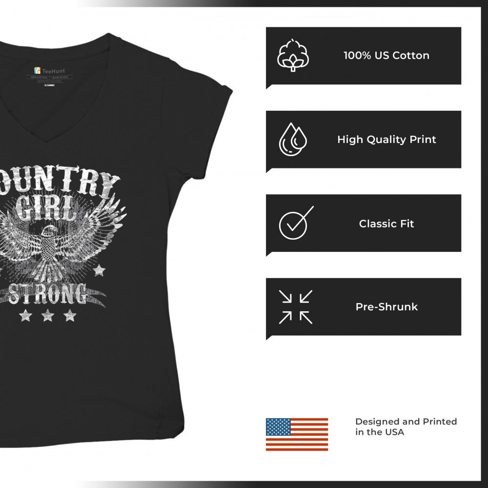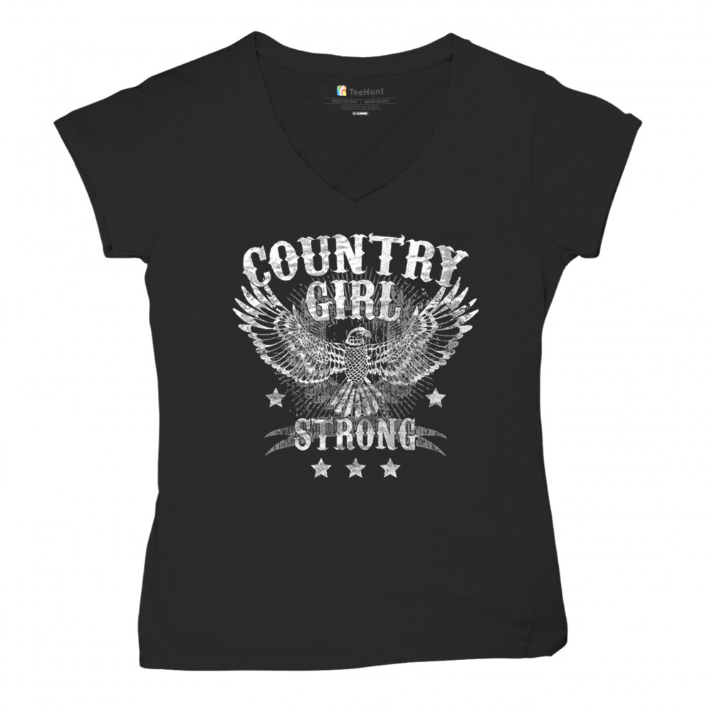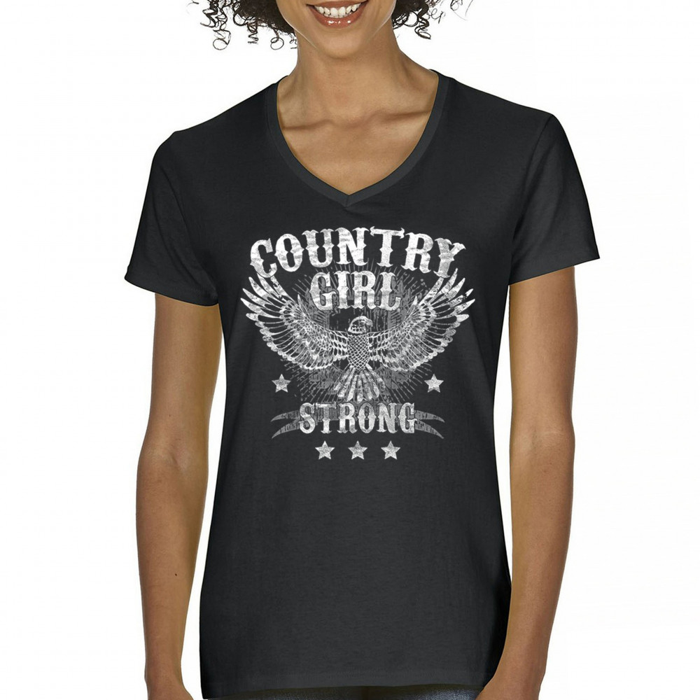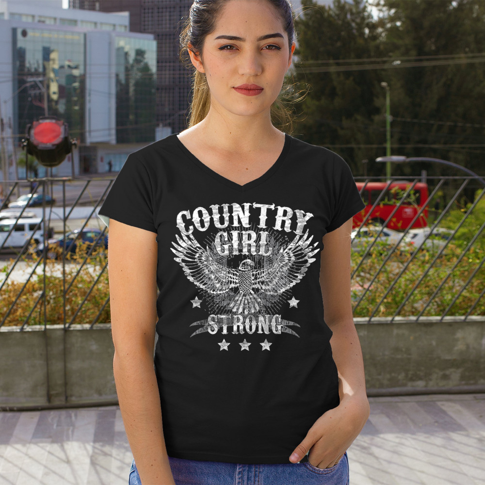 COUNTRY GIRL STRONG EAGLE women's v-neck t-shirt distressed patriotic gift tee black