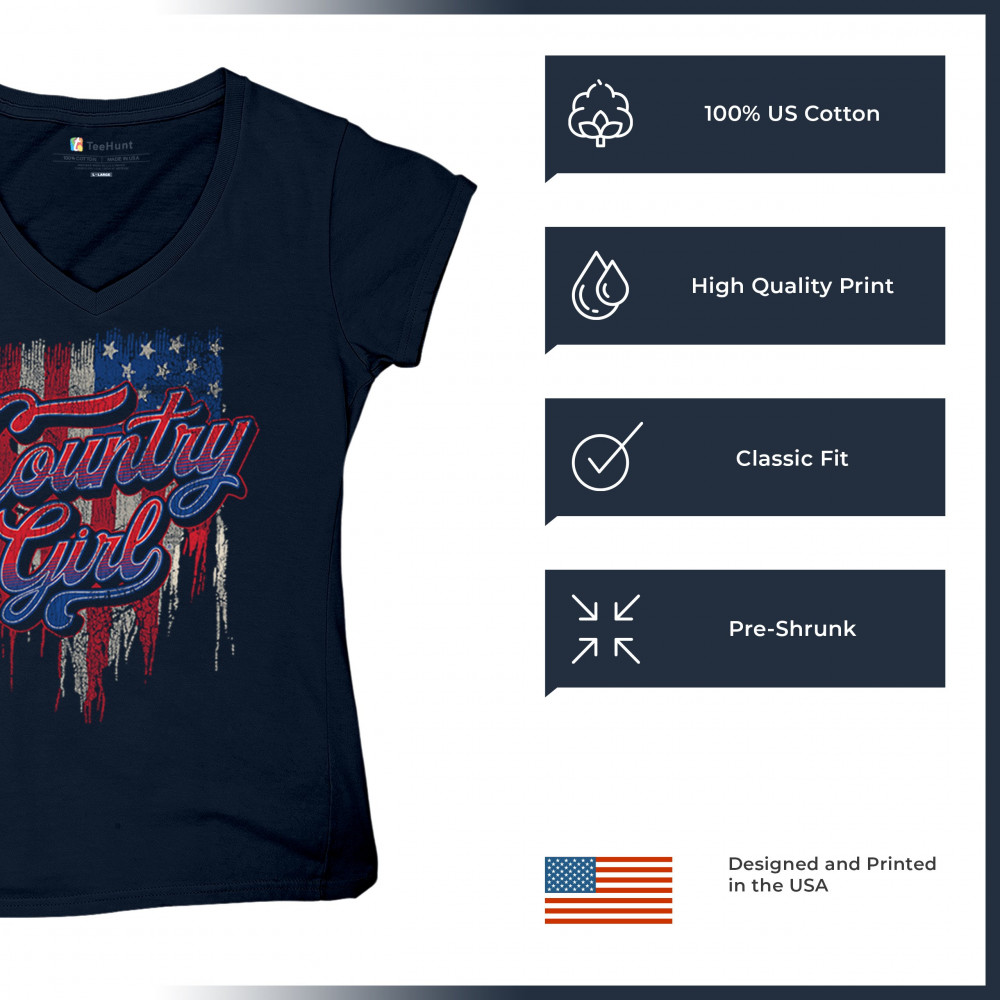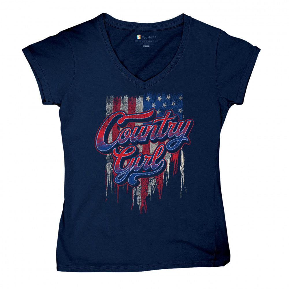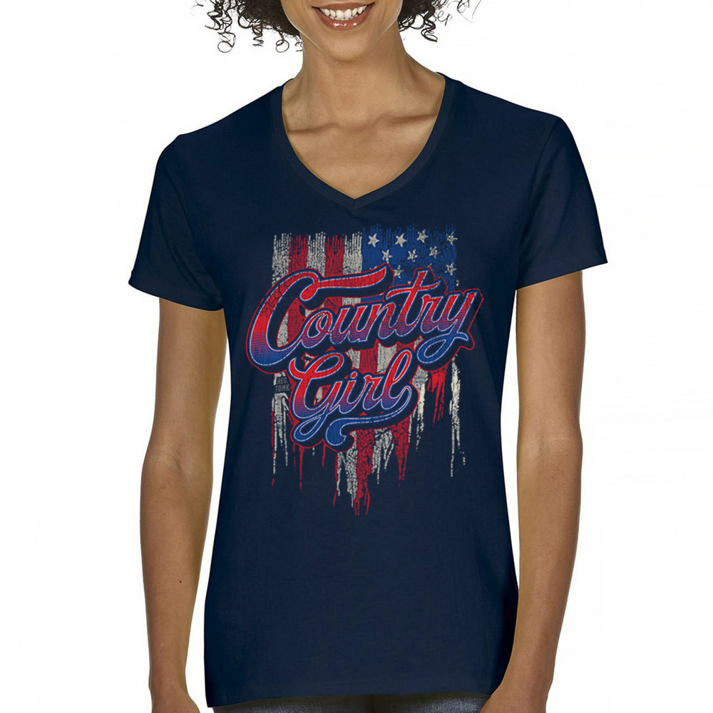 Patriotic country girl design with flag backdrop and bold script—perfect for rodeos, BBQs, ranch life, or 4th of July pride.