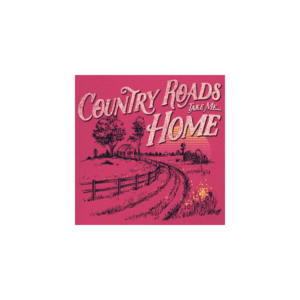 Celebrate your love for small town charm and scenic drives with this nostalgic country roads design. Featuring a bold "Take Me Home" message over a retro-styled sunset, it’s ideal for road trips, summer nights, fairs, concerts, and rural adventures. Let your wanderlust and country soul shine in every mile.