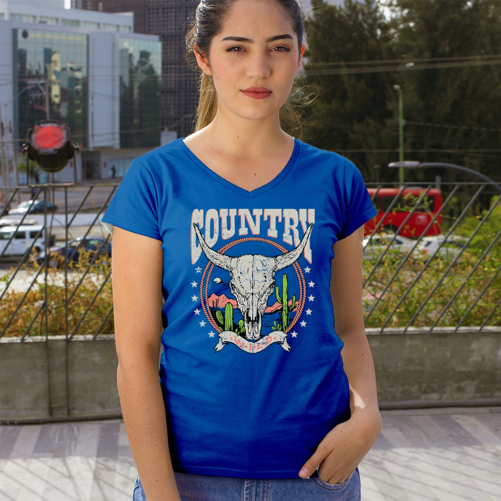 Country Wild features a steer skull with desert flair, perfect for rodeo cowboys, barn dances, country roots, and wild western spirit.