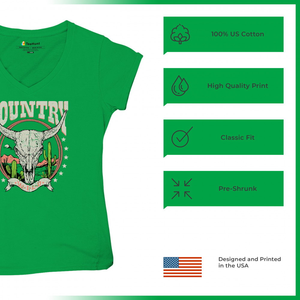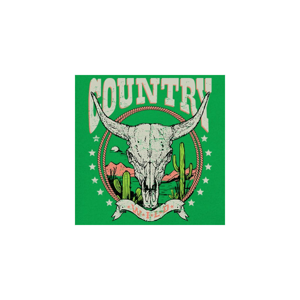 Country Wild features a steer skull with desert flair, perfect for rodeo cowboys, barn dances, country roots, and wild western spirit.