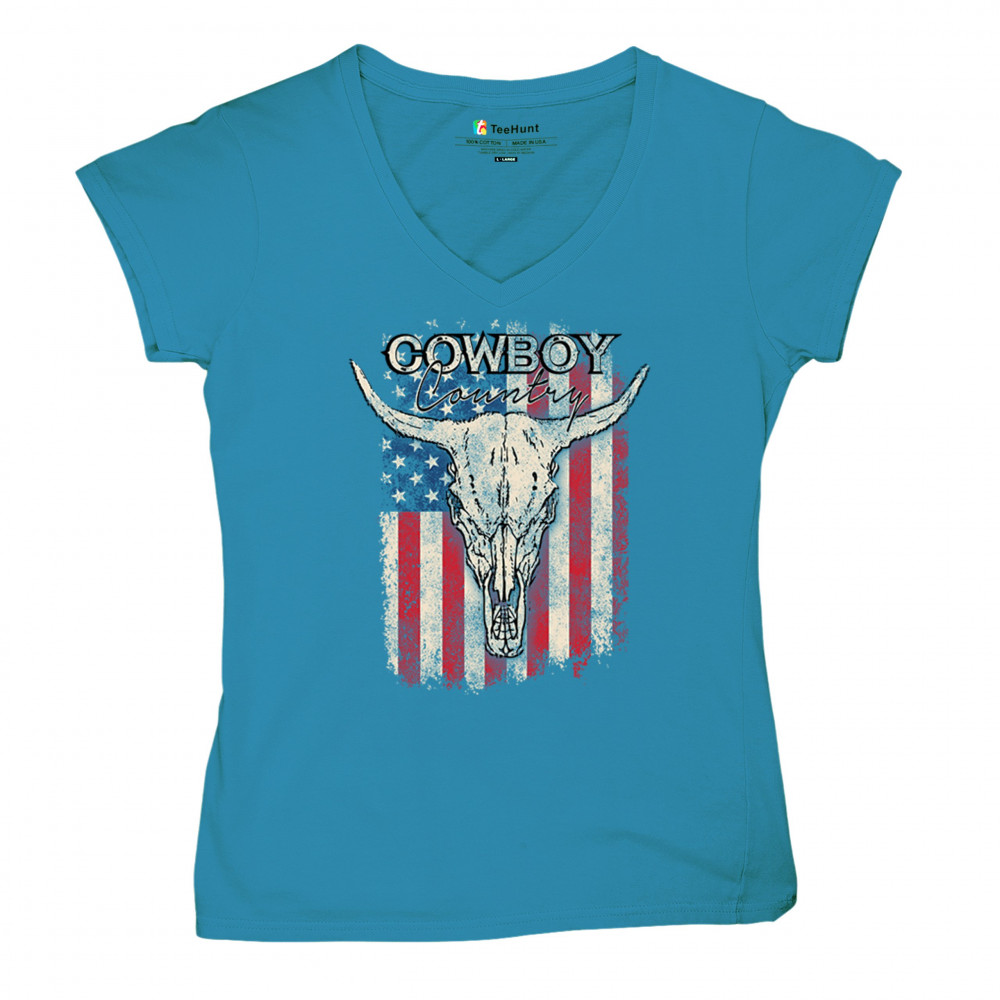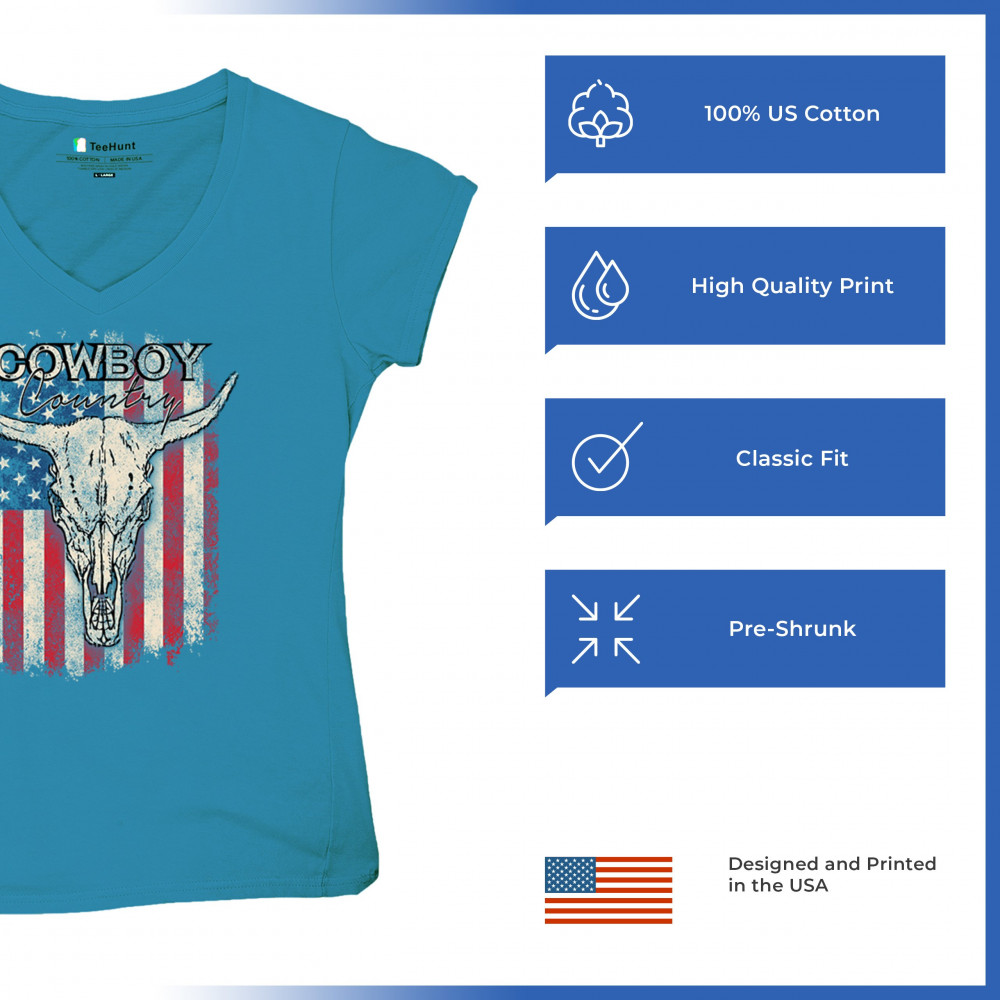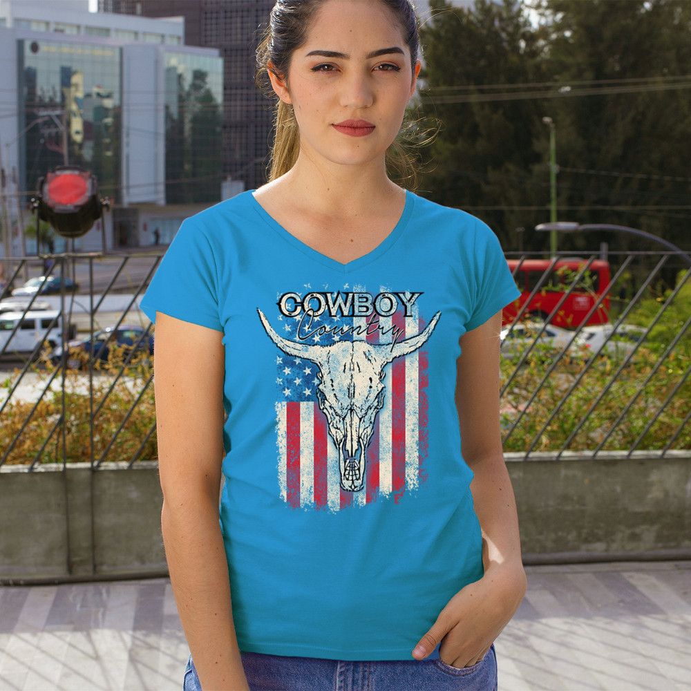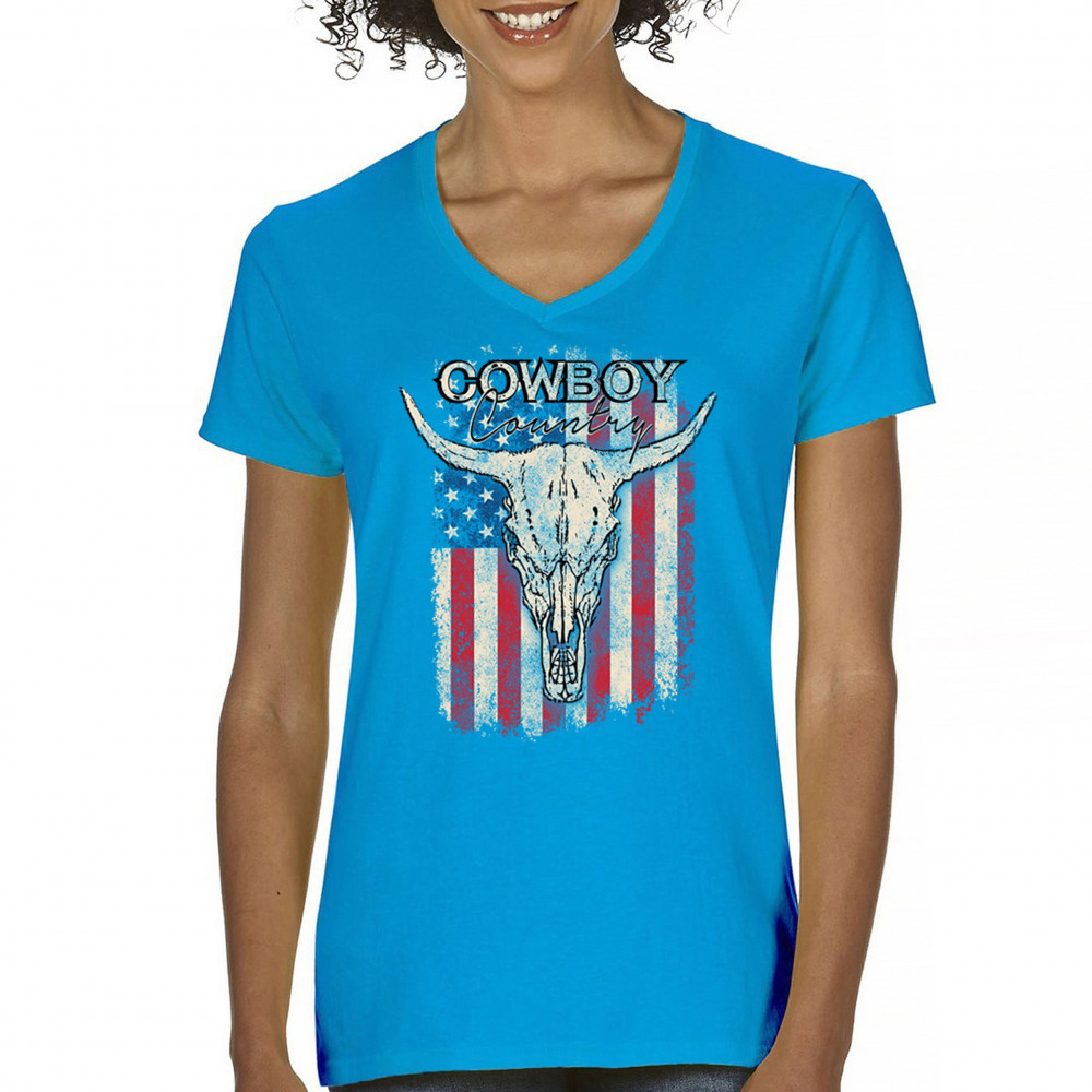 Cowboy Country steer skull design fuses rustic Americana, rodeo style, western heritage, and desert vibes for true frontier spirit.