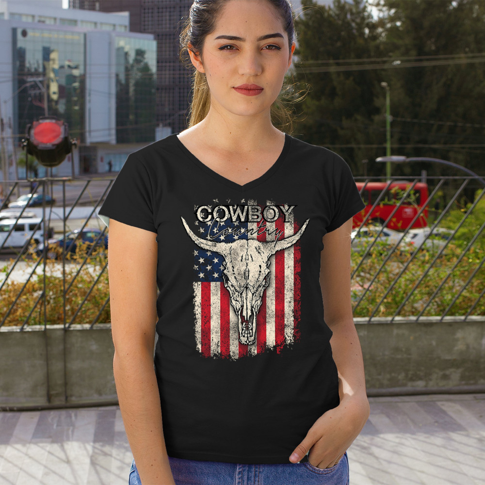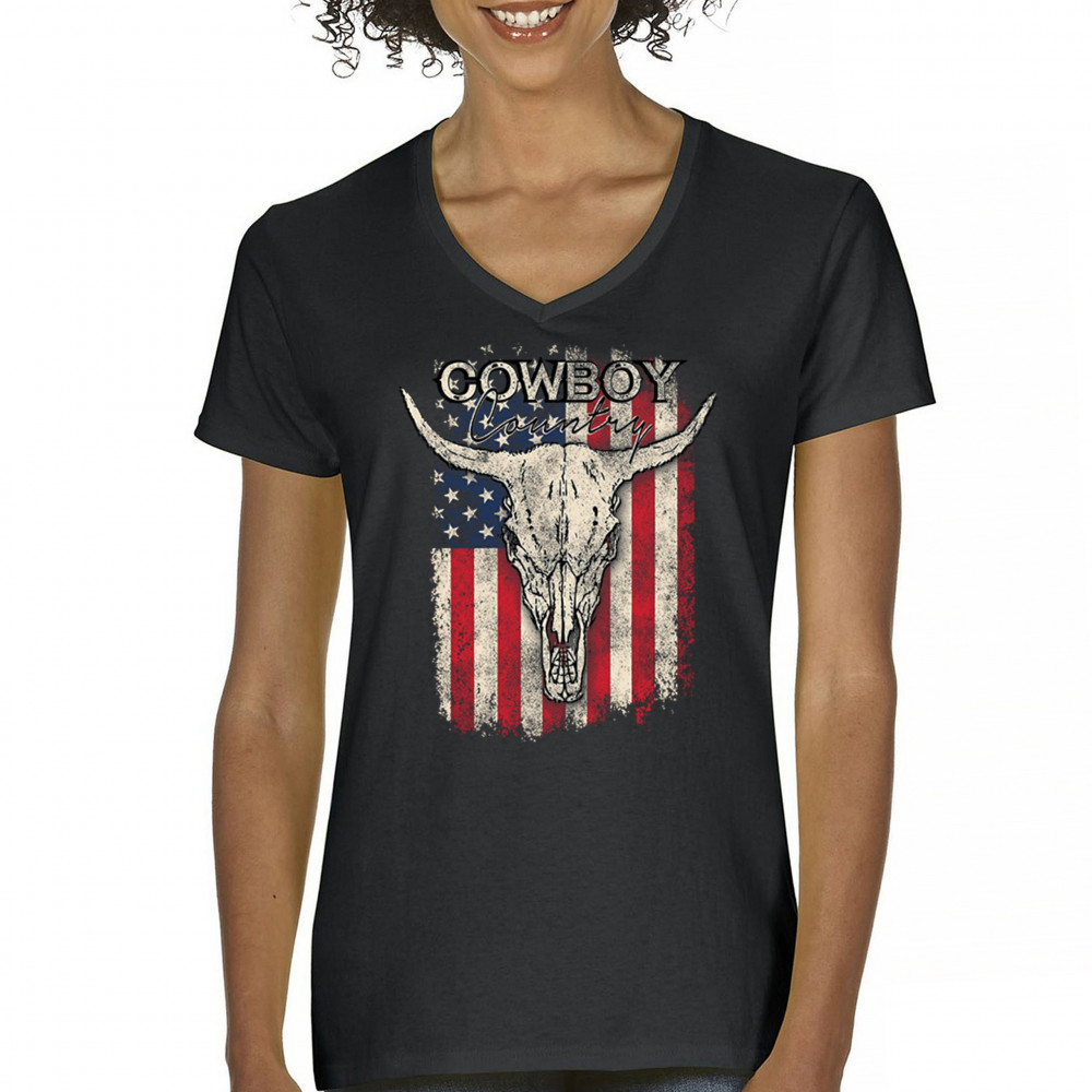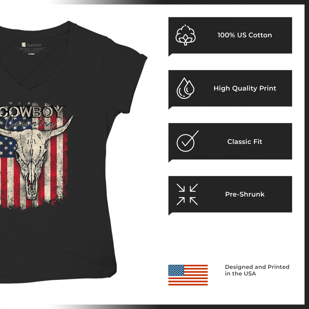 Cowboy Country steer skull design fuses rustic Americana, rodeo style, western heritage, and desert vibes for true frontier spirit.