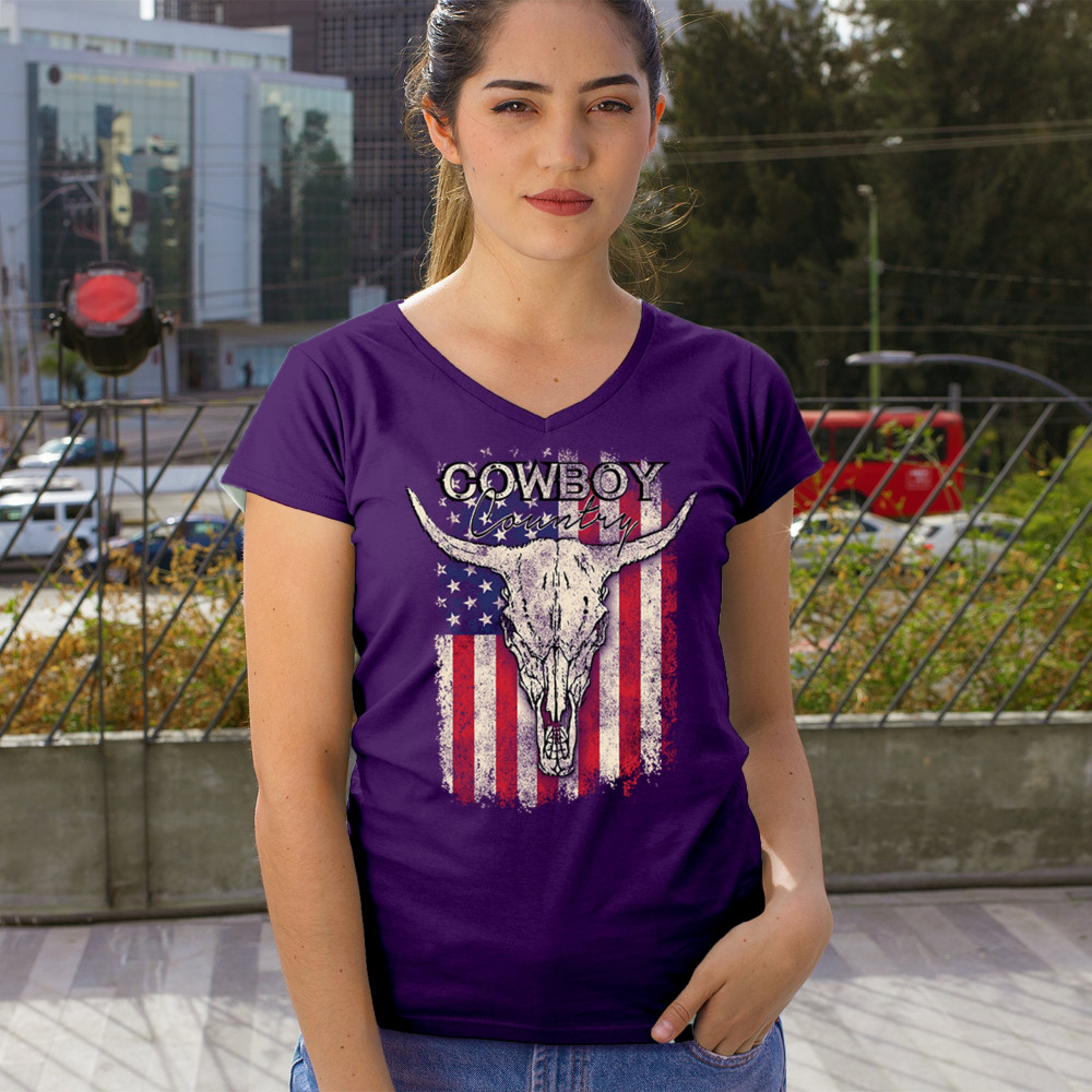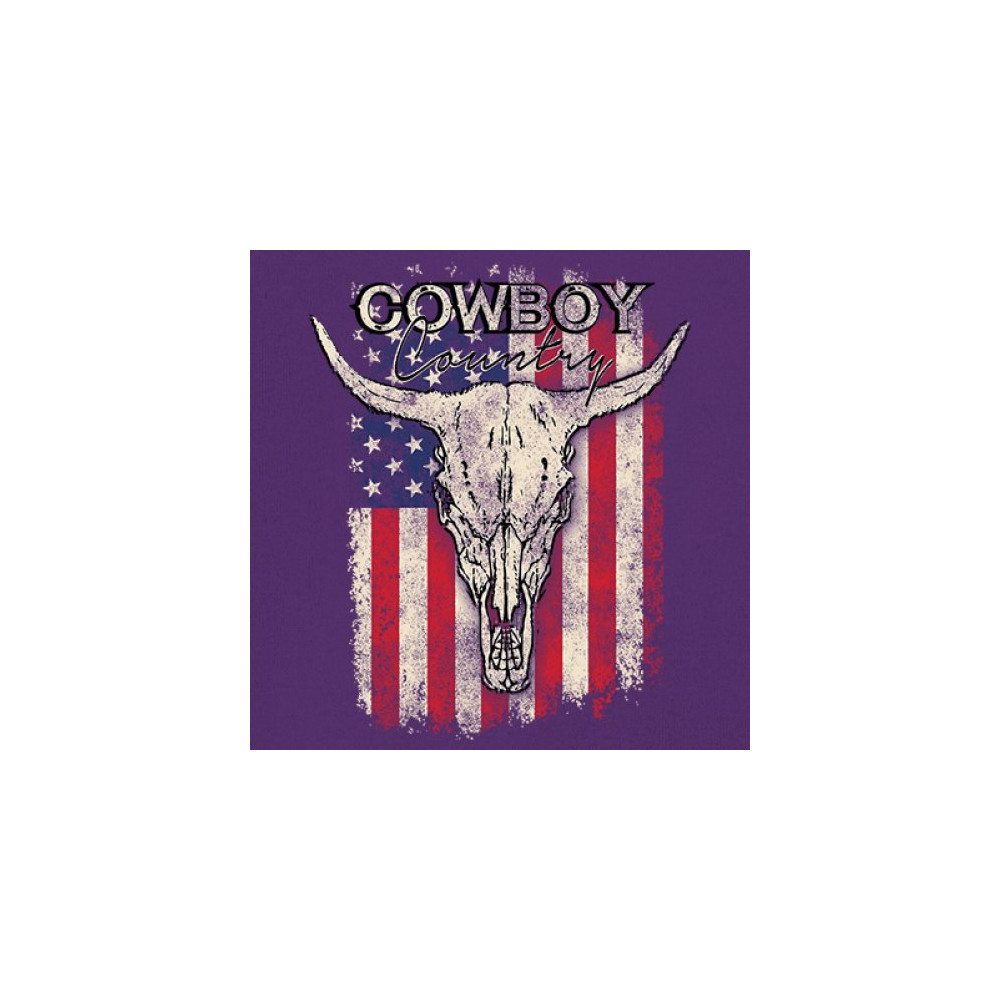 Cowboy Country steer skull design fuses rustic Americana, rodeo style, western heritage, and desert vibes for true frontier spirit.