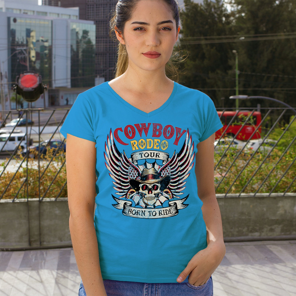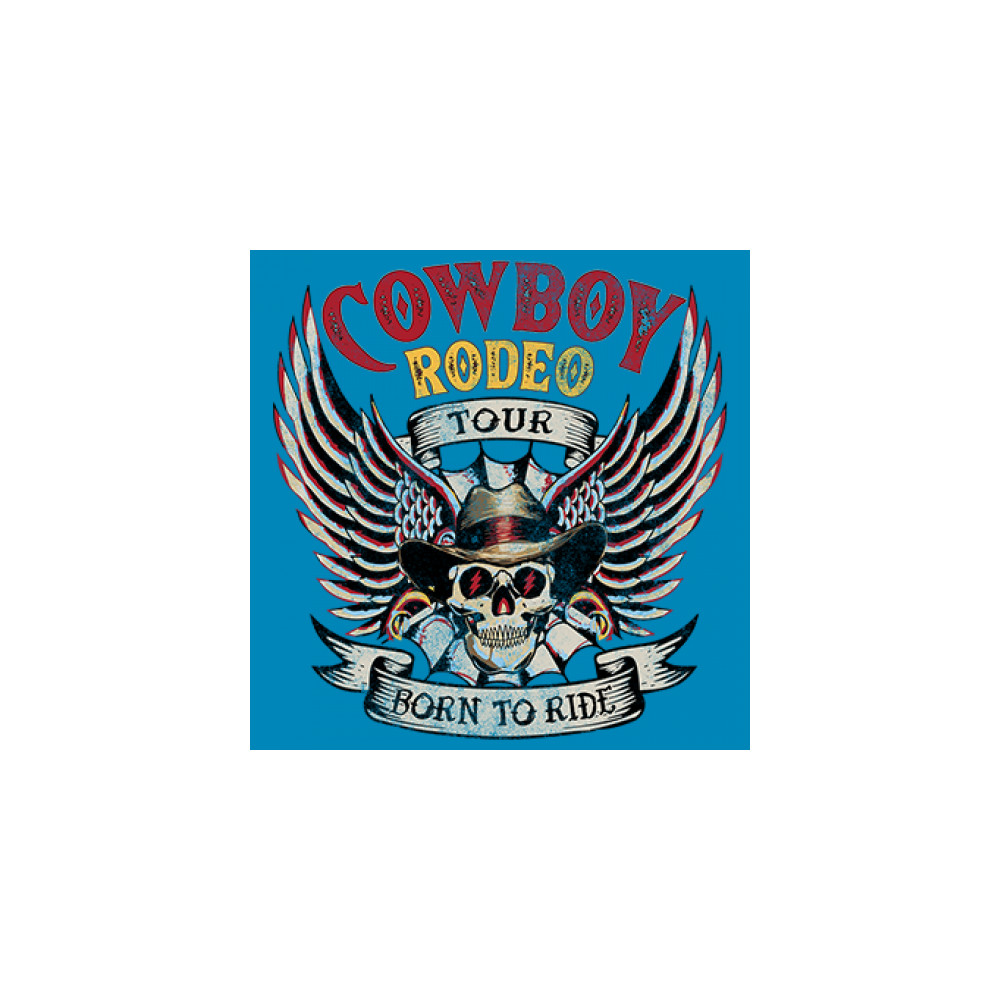 Cowboy Rodeo Tour “Born to Ride†design with skull, wings, and western grit. Built for riders, rebels, and rodeo fans who live wild.