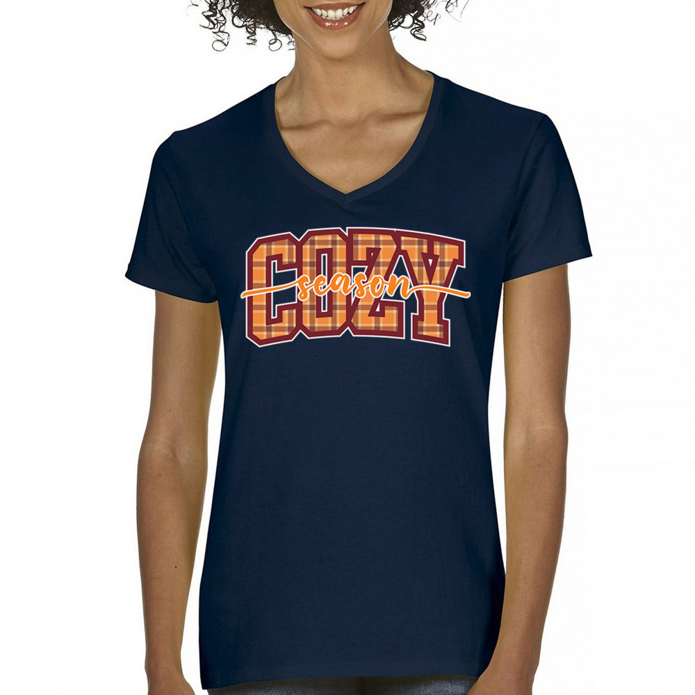Celebrate fall with this "Cozy Season" plaid design. Perfect for autumn lovers who cherish cozy days, warm drinks, and the beauty of the season.