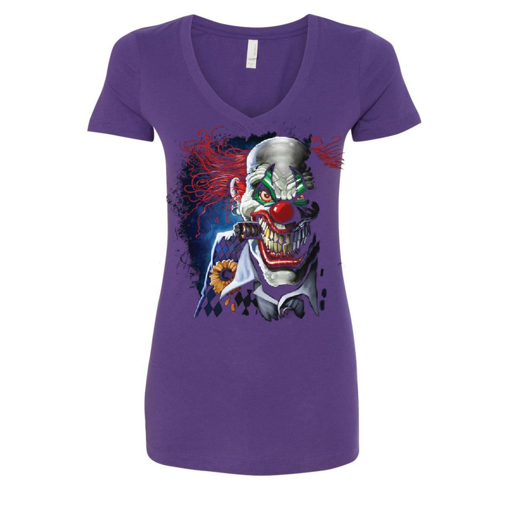 CREEPY JOKER CLOWN women's v-neck t-shirt nightmare scary mean killer halloween purple