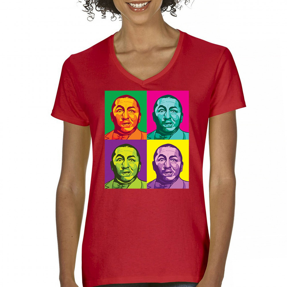 Introducing our dazzling pop art collection, headlined by the inimitable Curly of the Three Stooges! With a quartet of vivid hues, this T-shirt is a contemporary twist on classic humor. It's a standout piece for any fan's collection, capturing the timeless expression of Curly in a modern art style that's sure to turn heads and spark smiles.