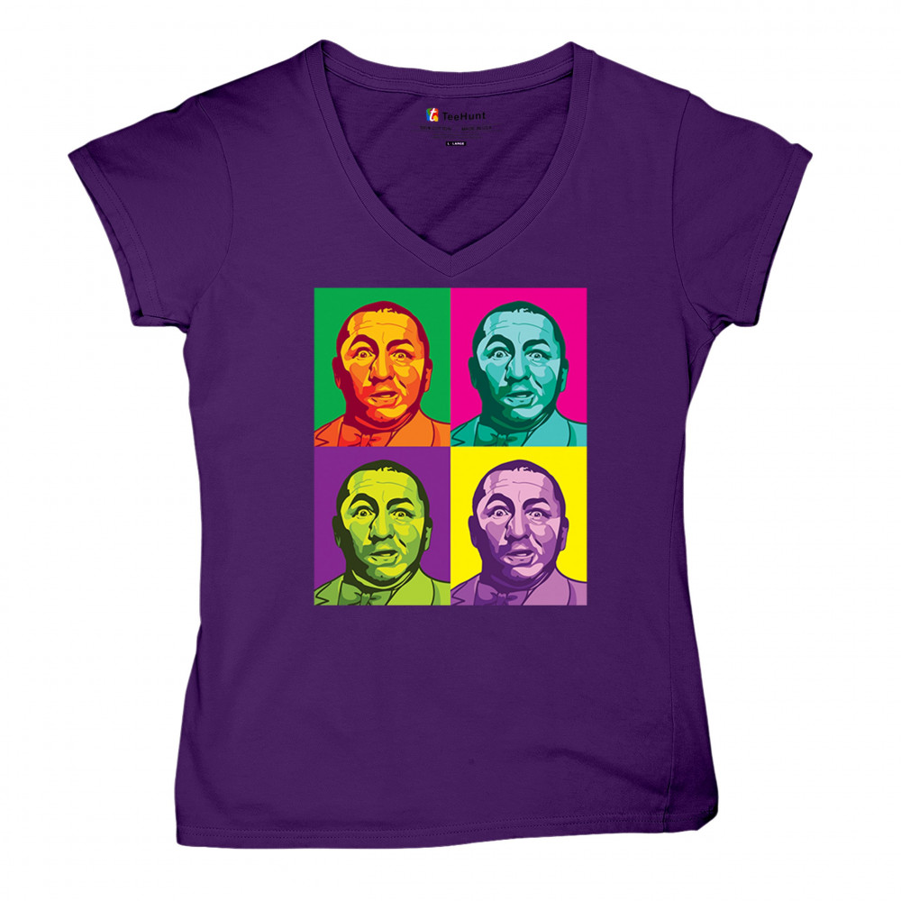 Introducing our dazzling pop art collection, headlined by the inimitable Curly of the Three Stooges! With a quartet of vivid hues, this T-shirt is a contemporary twist on classic humor. It's a standout piece for any fan's collection, capturing the timeless expression of Curly in a modern art style that's sure to turn heads and spark smiles.