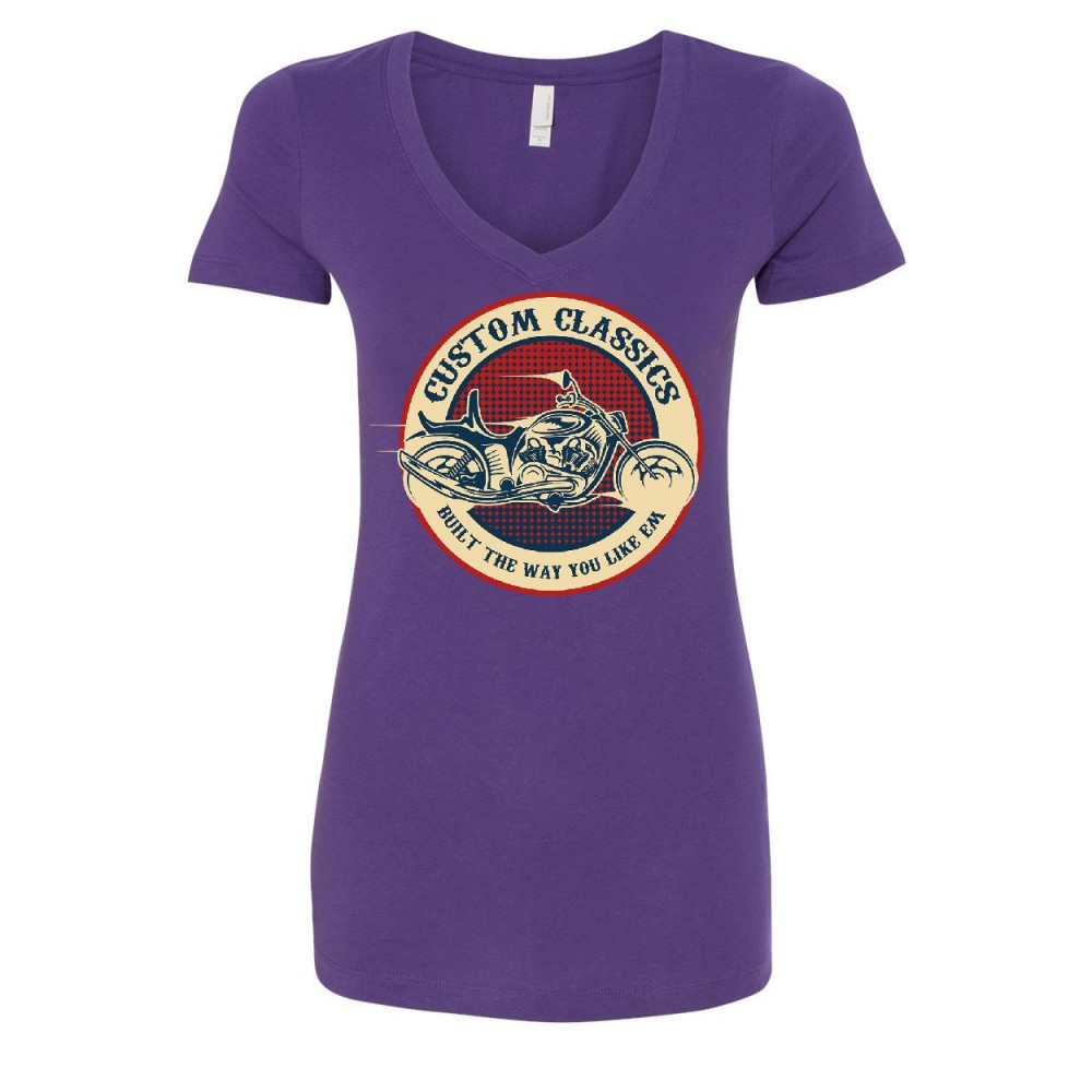CUSTOM CLASSICS women's v-neck t-shirt chopper bobber biker rte 66 live to ride purple