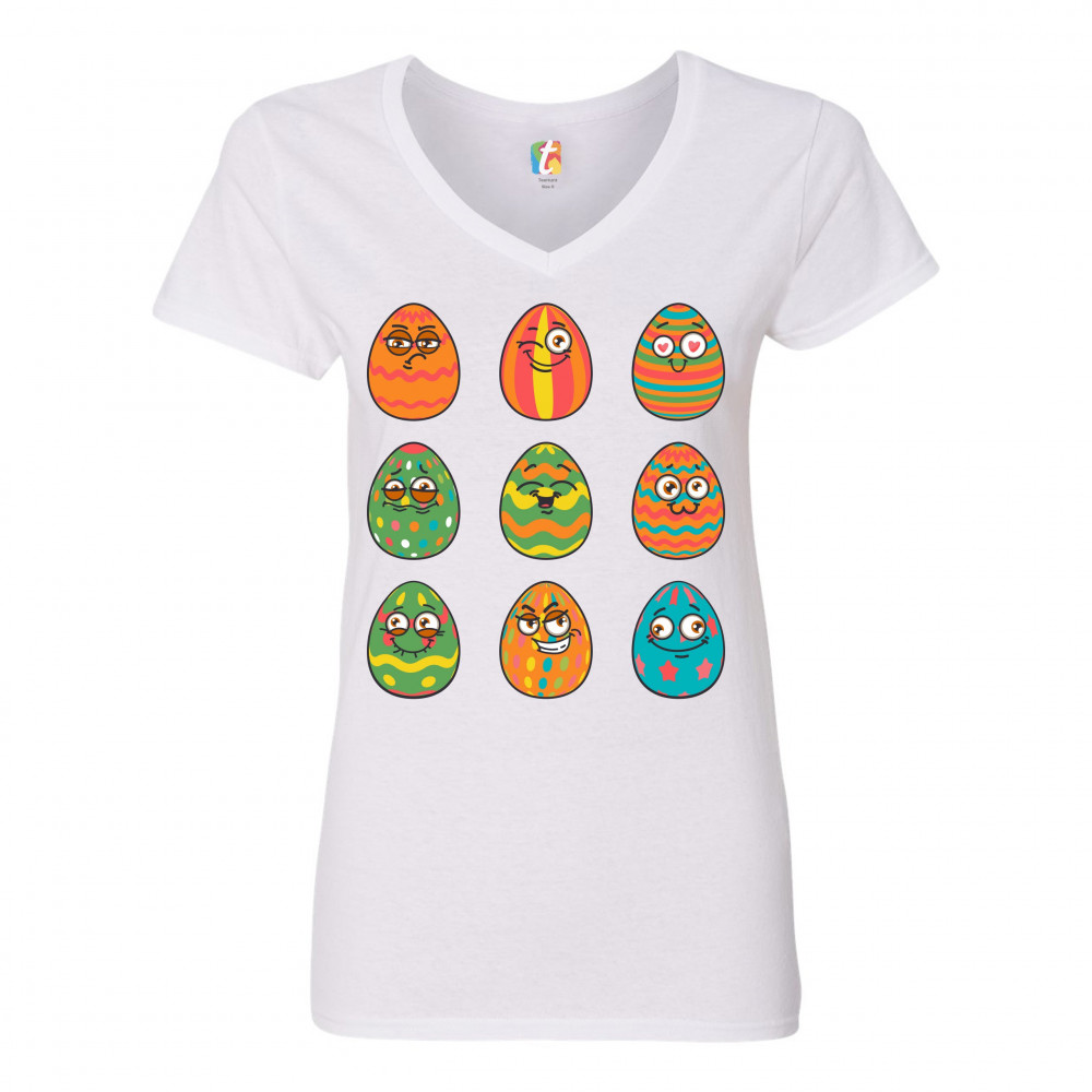 CUTE EASTER EGGS women's v-neck t-shirt jesus christ happy easter egg hunt tee white