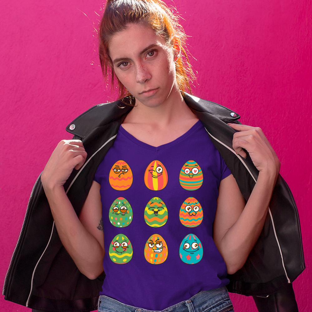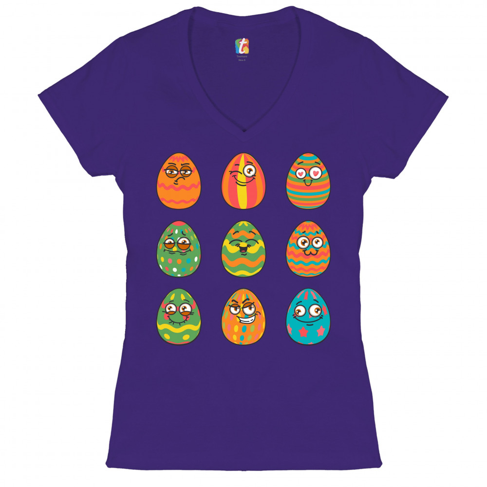 CUTE EASTER EGGS women's v-neck t-shirt jesus christ happy easter egg hunt tee purple