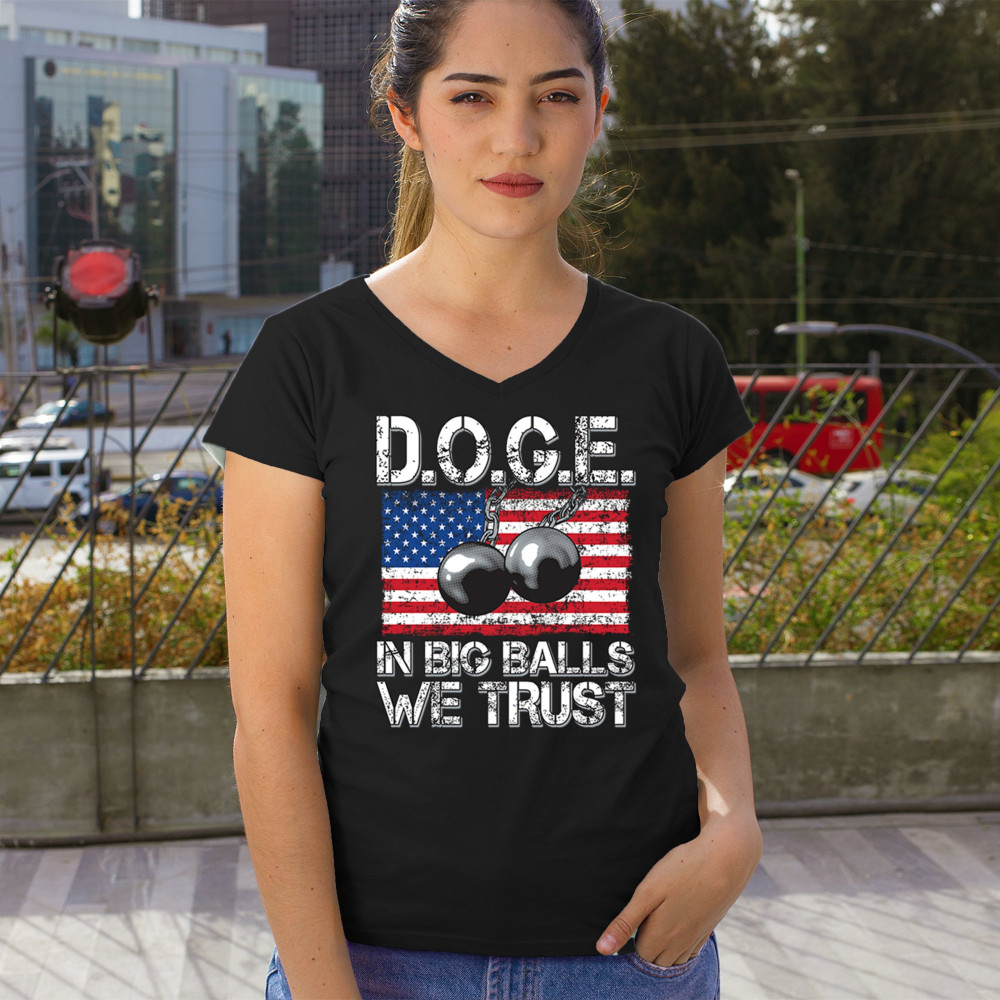 The D.O.G.E. In Big Balls We Trust design blends patriotic grit with sharp political satire. Featuring chained wrecking balls over a distressed American flag, this graphic hits hard. Perfect for conservative men, bold personalities, and political events like rallies, debates, and meetups.