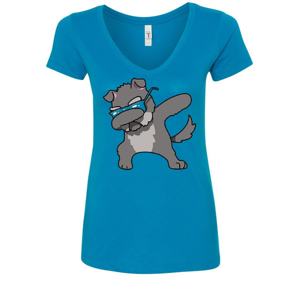 DABBING DOG in glasses women's v-neck t-shirt doggie dab pet lovers pup puppy turquoise