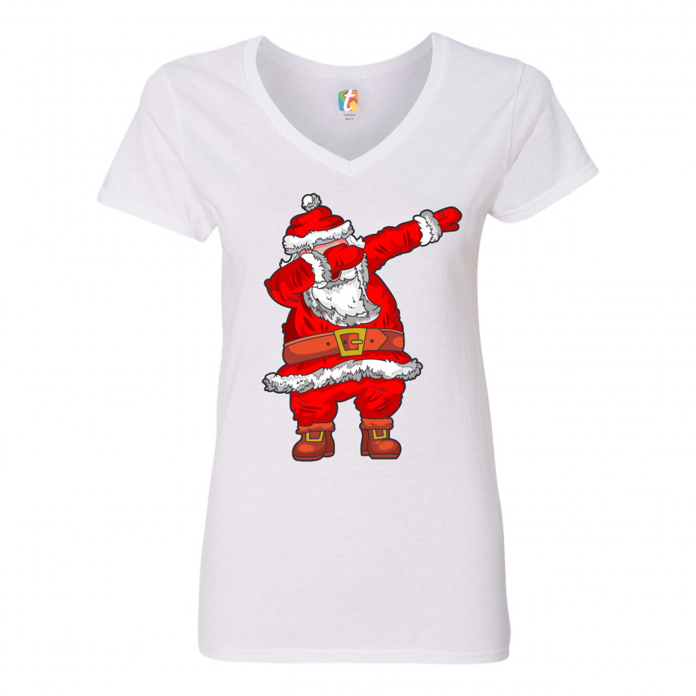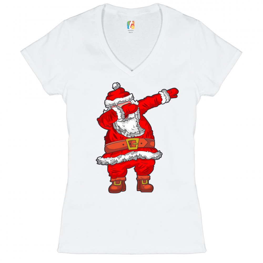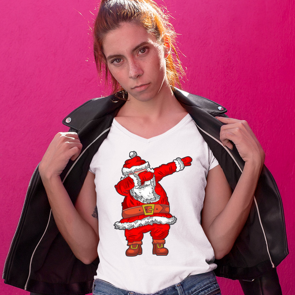 DABBING SANTA CLAUS women's v-neck t-shirt merry christmas funny dab dance tee white