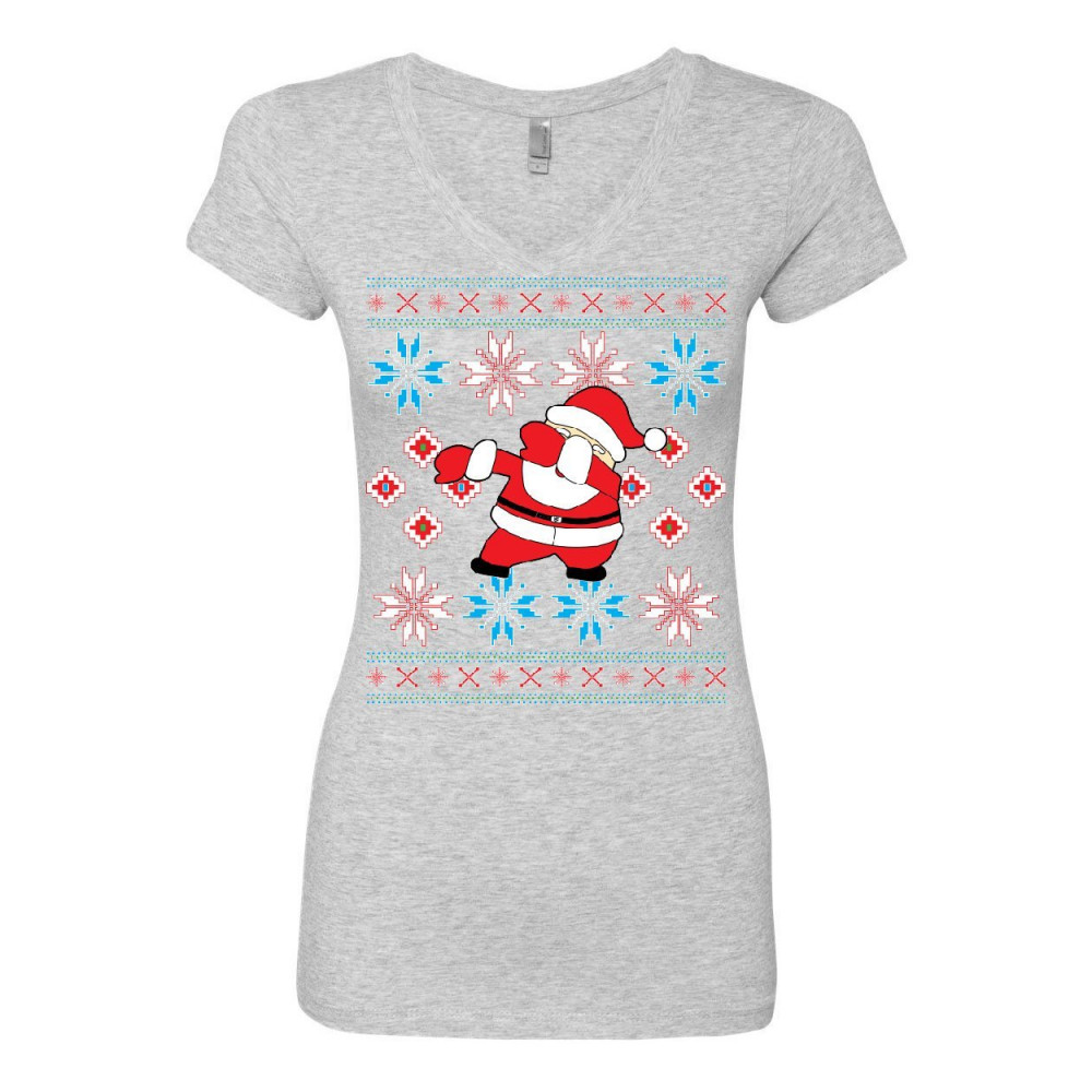 DABBING SANTA ugly sweatshirt women's v-neck t-shirt christmas xmas holiday dab gray