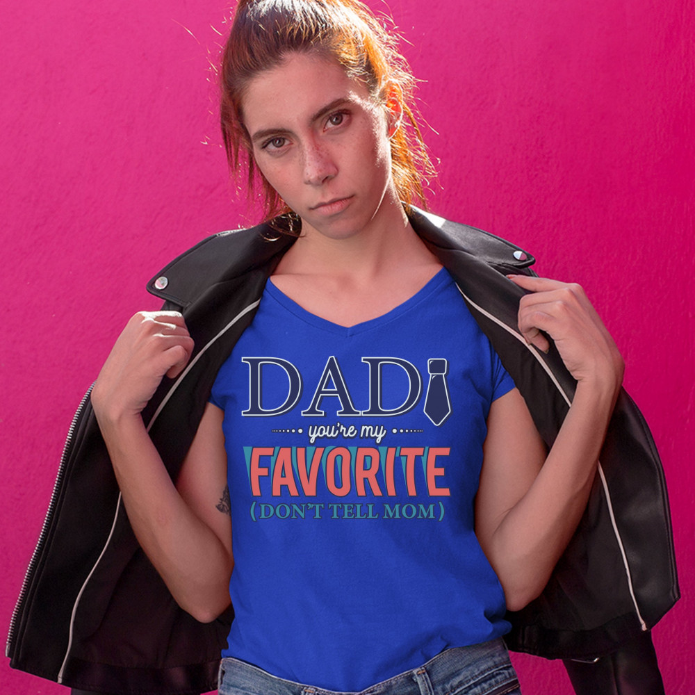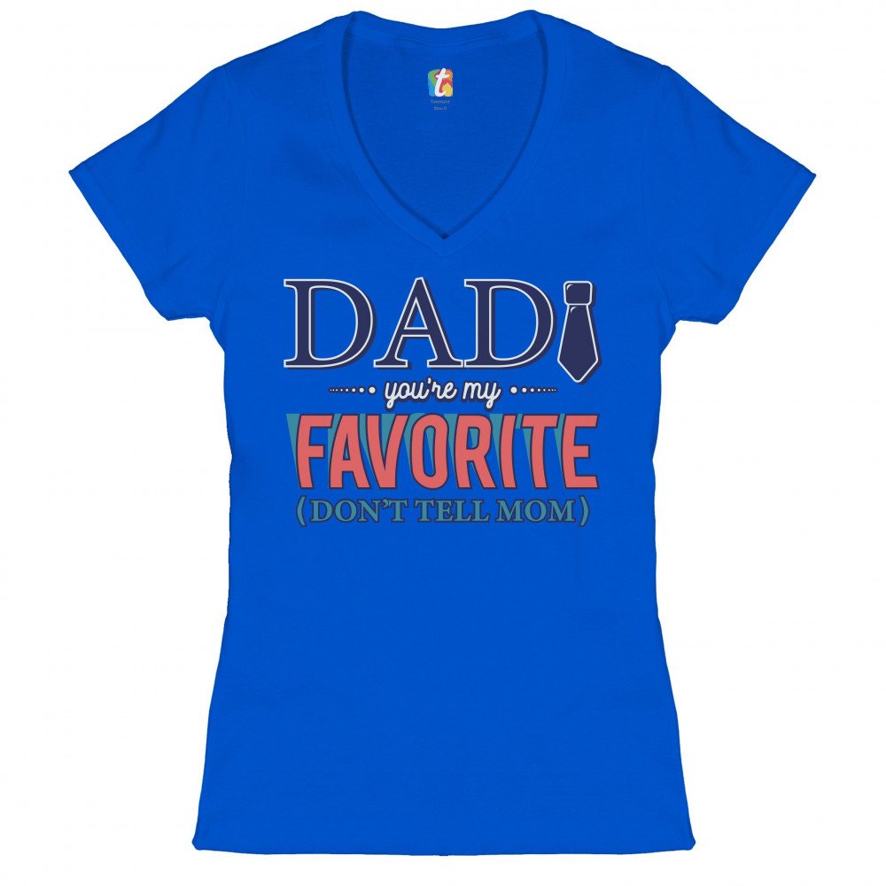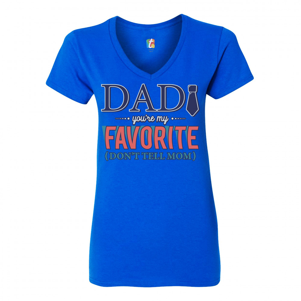 DAD YOU'RE MY FAVORITE (DON'T TELL MOM) dad you're my favorite don't tell mom women's v-neck t-shirt father's day tee royal blue
