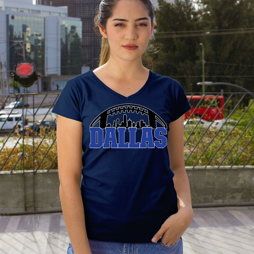 Show off your Dallas pride with a bold football-themed design featuring the city's skyline. Perfect for game days, tailgates, and passionate fans.