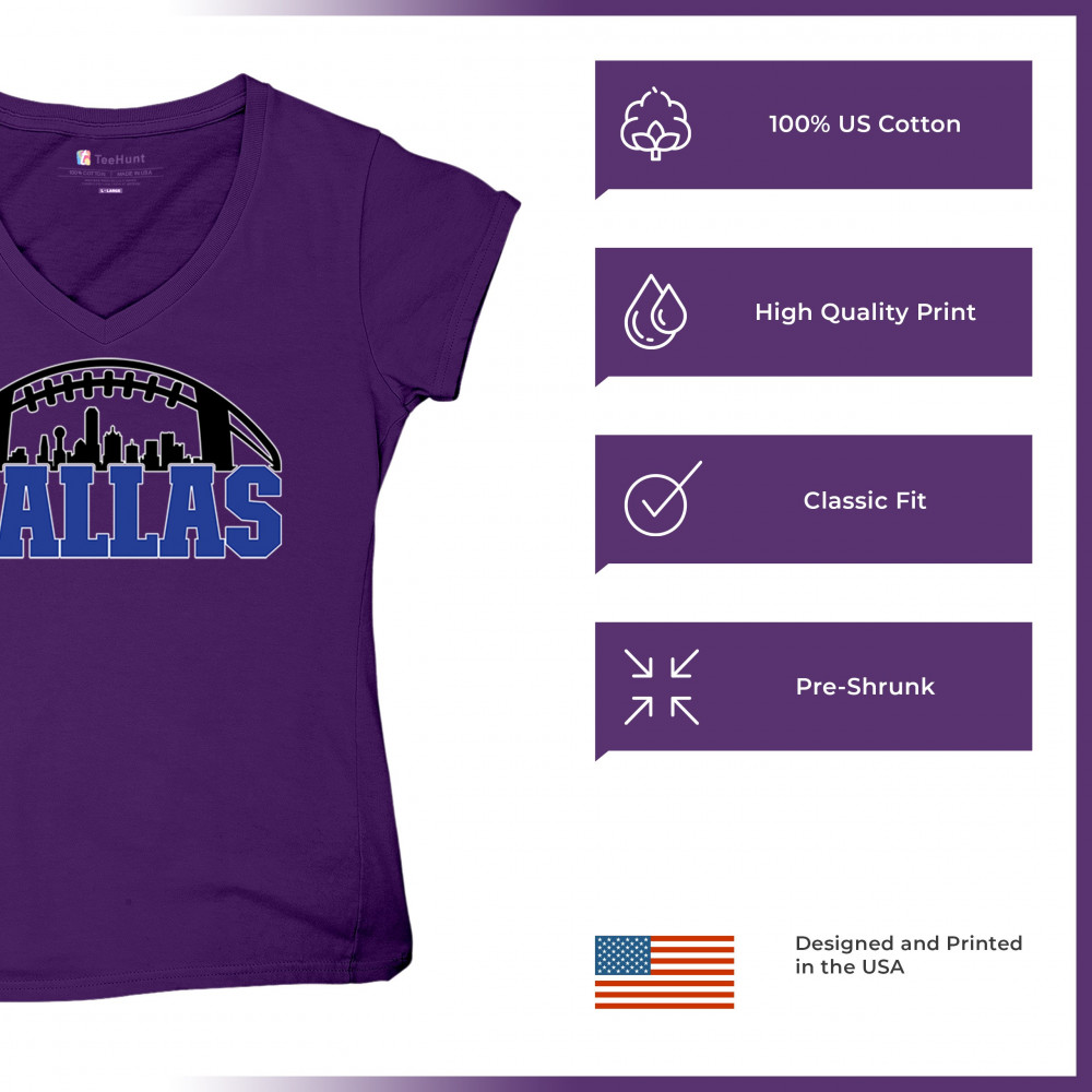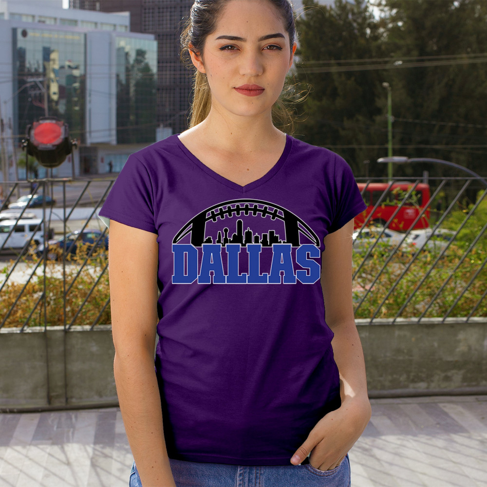Show off your Dallas pride with a bold football-themed design featuring the city's skyline. Perfect for game days, tailgates, and passionate fans.