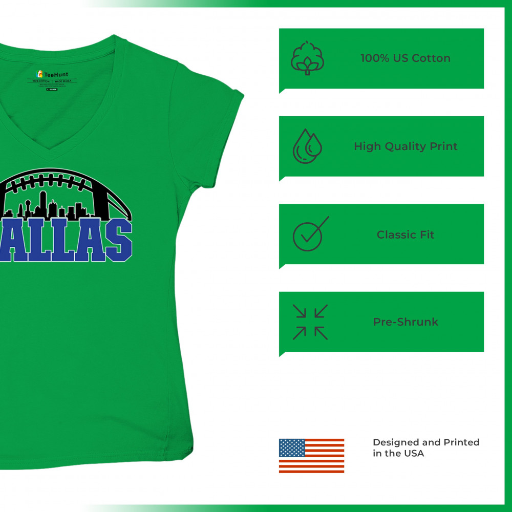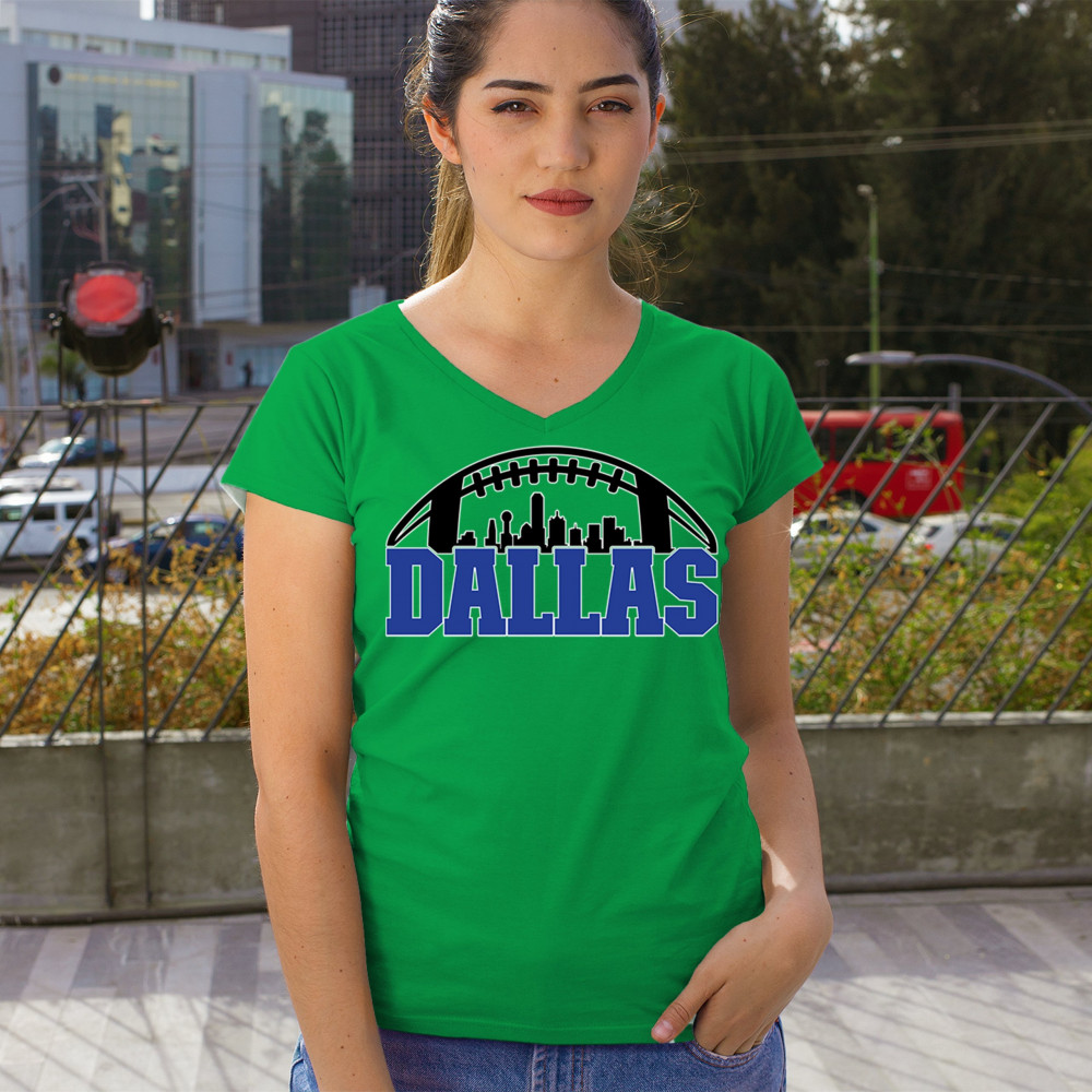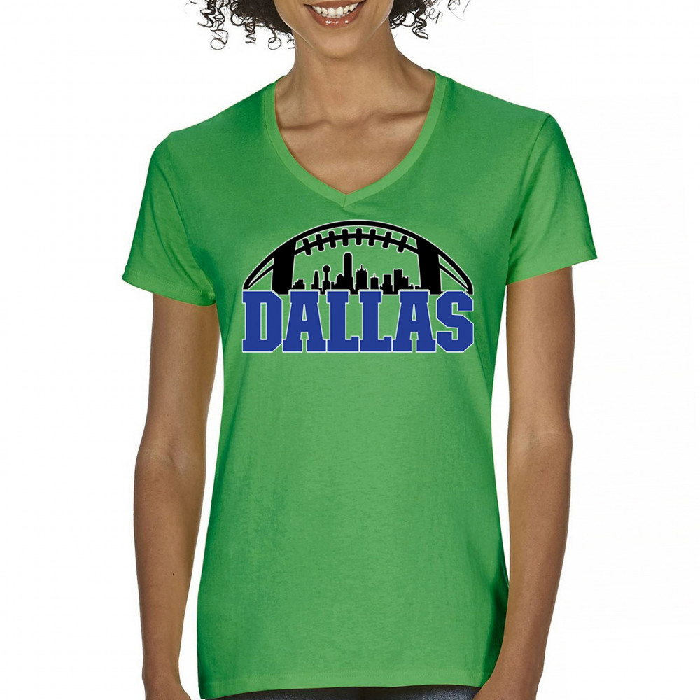 Show off your Dallas pride with a bold football-themed design featuring the city's skyline. Perfect for game days, tailgates, and passionate fans.