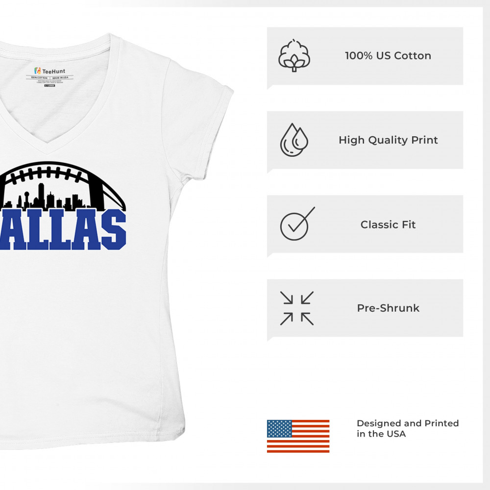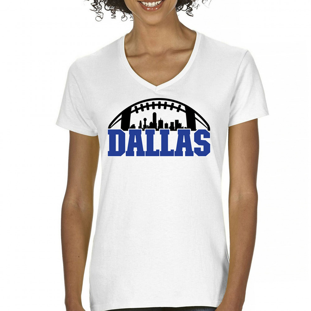 Show off your Dallas pride with a bold football-themed design featuring the city's skyline. Perfect for game days, tailgates, and passionate fans.