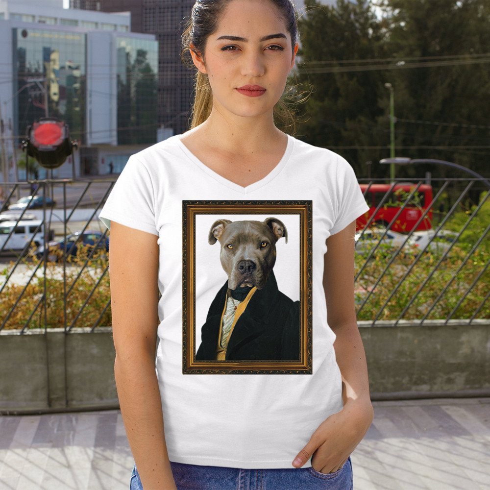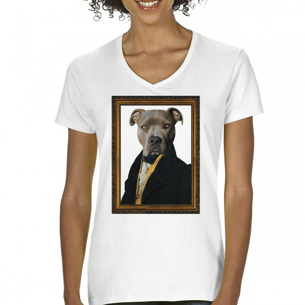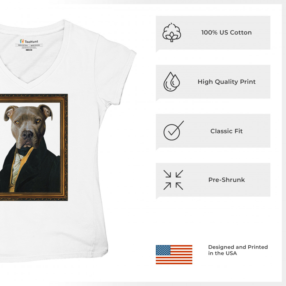 Unique pit bull portrait in 18th-century attire, blending humor and elegance for pet lovers and history enthusiasts. Perfect for home or office decor.