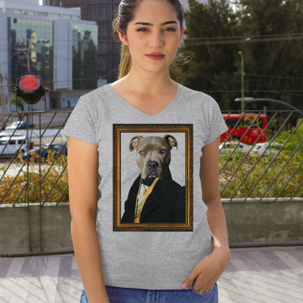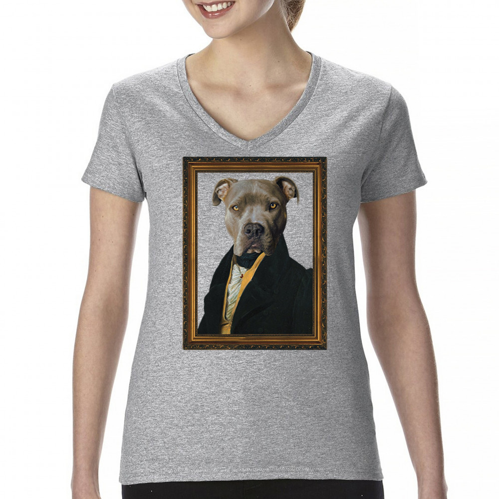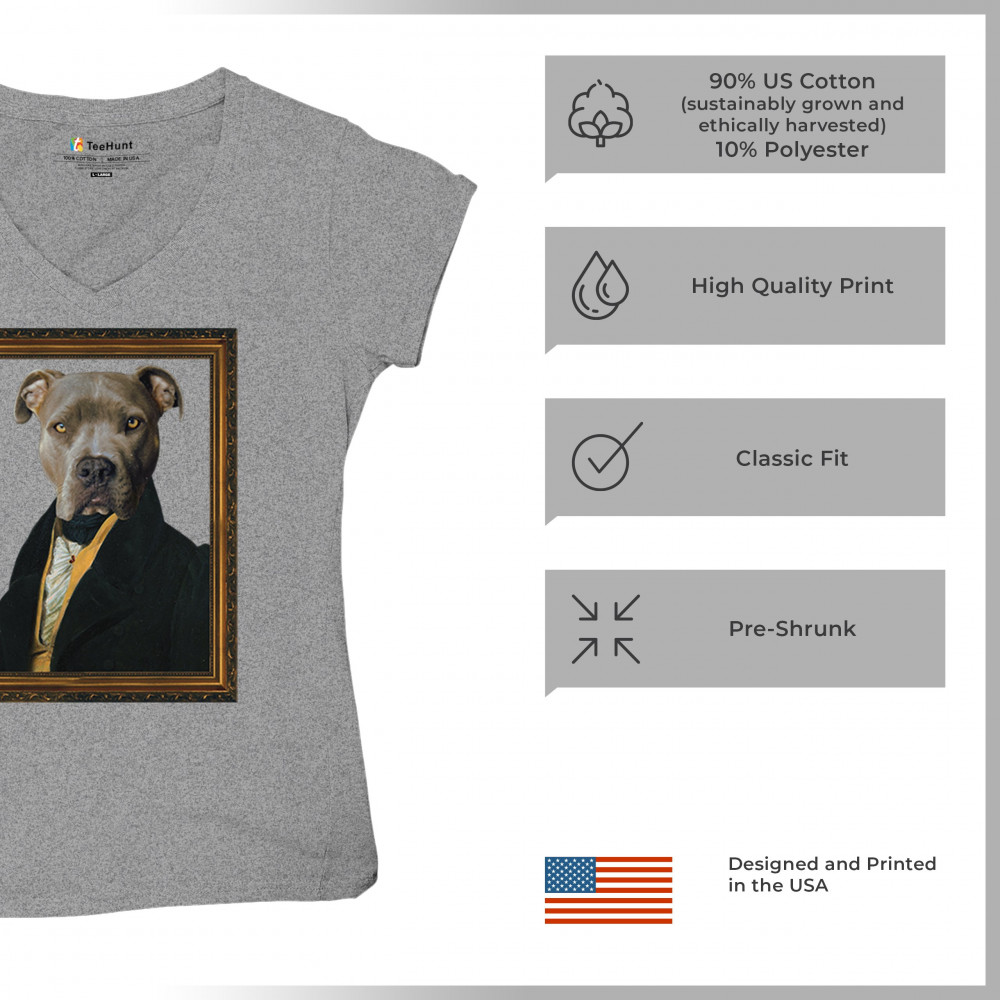 Unique pit bull portrait in 18th-century attire, blending humor and elegance for pet lovers and history enthusiasts. Perfect for home or office decor.